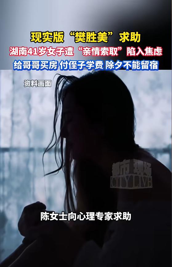 “中国人都看不下去了!”湖南,一41岁女子长期被娘家索取,不仅给哥哥买房,还帮侄子付学费,眼看临近春节,娘家又让女子给他们置办大家电,本以为女子付出这么多,总会得到真心,可没想到,除夕夜娘家都不让她留宿!网友:太无情了吧! 据2月8日媒体报道,陈女士是个特别重亲情的人,从小就被灌输“娘家是根”的想法,看着娘家条件普通,哥哥日子过得拮据,她打心底里想多帮衬。 从一开始,她就没拒绝过娘家人的任何要求,哪怕自己过得紧巴巴,也总想着先顾着娘家。 几年前,哥哥要买房结婚,凑来凑去都差一大笔首付,娘家人第一时间就想到了陈女士。 她没有犹豫,拿出了自己多年省吃俭用攒下的全部积蓄,一分不少地给哥哥凑齐了首付,帮哥哥圆了买房梦。 本以为这只是一时的帮扶,可没想到,这一帮,就再也停不下来。 后来侄子到了上学的年纪,娘家人又找到陈女士,开口就让她负责侄子的学费,没有丝毫客气。 陈女士看着年幼的侄子,又想起娘家的难处,哪怕自己的生活也并不宽裕,还是一口答应了下来,这一承担,就是好几年。 她总觉得,血浓于水,自己多付出一点,娘家人总能看在眼里,记在心里,总能换来真心相待。 可她万万没想到,自己的一味付出,换来的不是感恩,而是得寸进尺,是理所当然的索取。 眼看今年春节越来越近,家家户户都在忙着备年货、盼团圆,陈女士的娘家人,却又一次向她伸出了手。 这次他们的要求,是让陈女士再拿出一笔钱,给家里置办一套大家电,说是过年家里要添新气象。 陈女士心里其实已经有些力不从心,这些年无休止的付出,早已让她不堪重负,但看着娘家人期盼的眼神,还是没好意思拒绝。 她只是顺口提了一句,说除夕夜想在娘家住一晚,好好陪陪家里人,毕竟一年到头,也难得聚一次。 可让她彻底心寒的是,娘家人想都没想,就一口拒绝了她,没有任何犹豫,也没有半句解释。 那一刻,陈女士所有的委屈和付出,仿佛都成了一个笑话,这么多年掏心掏肺的帮扶,竟然连一晚的留宿资格都换不来。 那种被亲人抛弃、不被重视的感觉,压得她喘不过气来,连日来的委屈和压抑一下子爆发出来。 因为太过伤心,也无法走出这种内耗,陈女士最终只能去寻求心理医生的帮助,希望能通过专业的开导,走出这段痛苦的内耗,重新找回自己。 其实生活里,像陈女士这样的人,真的不在少数,尤其是一些重亲情的女性,总被“娘家是根”“要帮扶娘家”的想法束缚着。 她们宁愿委屈自己,宁愿自己省吃俭用,也要拼尽全力去帮扶娘家,总以为一味付出就能换来真心,可到最后,往往只能换来无尽的寒心和内耗。 有心理专家说,健康的亲情,从来都不是单方面的妥协和付出,而是彼此尊重、有来有往,守住自我,才是亲情的底线。 不是说不能帮扶娘家,而是帮扶要量力而行,要有底线,不能一味地牺牲自己,去满足别人的贪婪和索取。 很多时候,你的一味退让,只会让别人觉得理所当然;你的一味付出,只会养出别人的得寸进尺。 网友们看了陈女士的经历后,也纷纷替她打抱不平,有人说,这样的娘家,根本不配她的真心付出,分明就是把她当成了提款机。 也有人说,陈女士最该做的,就是及时止损,停止这种无休止的付出,好好爱自己,毕竟,连自己都不爱,又怎么能指望别人来爱你。 说真的,亲情固然重要,但绝不能成为消耗自己的枷锁。我们可以重亲情,可以去帮扶身边的亲人,但一定要有底线,要有分寸。 一味地付出换不来真心,只会让自己陷入无尽的内耗,及时止损,好好爱自己,才是最清醒、最正确的选择。