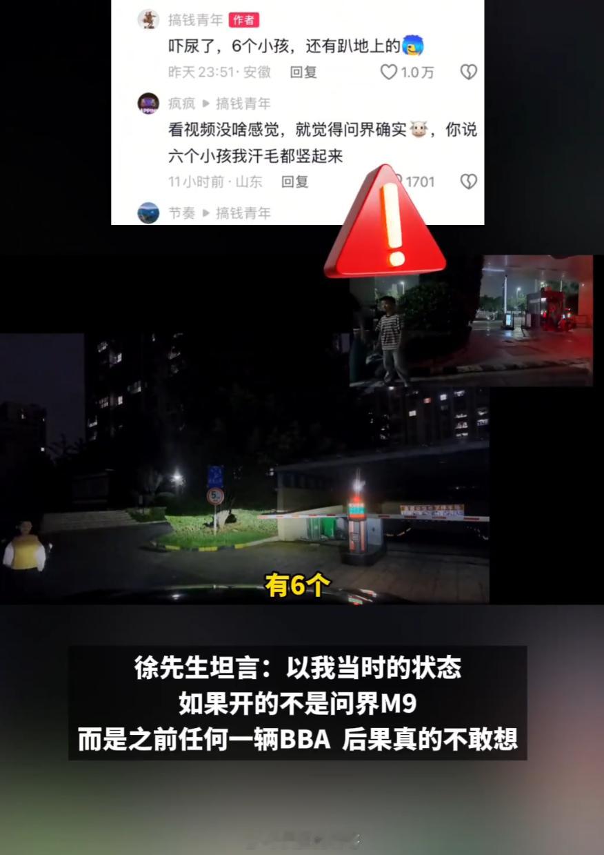 60万的车此刻值59万 看了下这种场景:夜晚、地下车库、视线盲区,地上还6个小孩趴着玩,不得不说这三个条件凑一起,哪怕你是10年老司机,都未必来得及反应.......遇到这种情形的人就知道,那时候的第一反应是后背一凉,这种情况下AEB毫秒级介入直接刹停,是车替你做了那个你根本来不及做的决定,所以我觉得智能辅助驾驶并不是让你开得多爽,而是在你最容易分神、最容易判断失误的场景下,车能不能站出来。问界M9主动刹停避让盲区6个小孩