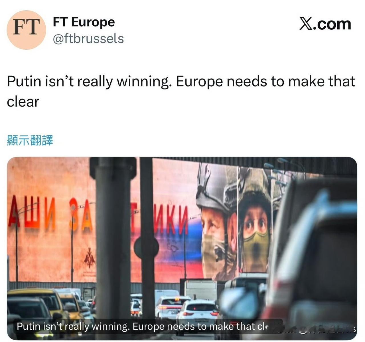 《金融时报》(FT):普京正试图向世界强加一种「乌克兰战败不可避免」的观感 普京正积极推动一种叙事,宣称俄罗斯在战争中即将取得胜利,并声称俄方已经挺过制裁、在前线掌握了战略主动权。 克里姆林宫押注于营造一种「历史宿命论」——即民主国家在与西方的全球对抗中注定失败。 莫斯科正在对外传播一种说法,称这场战争早已超出乌克兰国境,其核心目的在于说服西方政治人物:抵抗是徒劳的,俄罗斯的胜利是由历史所注定。 分析人士指出,在现代冲突中,能否成功塑造并强加自己的「历史叙事」,往往与战场上的实际军事成果同样重要。 如果全面审视局势,而不是透过俄罗斯宣传的视角来看,克里姆林宫的脆弱性就会暴露无遗。 乌克兰及其盟友的首要任务,是持续揭穿这些内在矛盾,并以自身的韧性历史与具体成果来对抗俄罗斯的操弄叙事。 俄乌战争