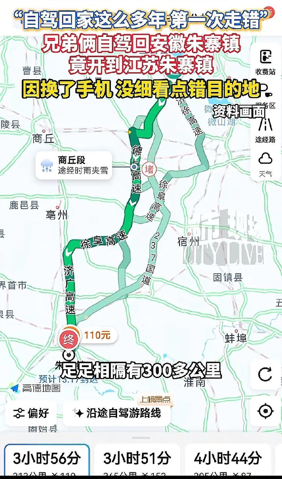 笑不活!浙江,兄弟俩开一辆车回的老家安徽朱赛村过年,不料,到了目的地后,大哥却发现路牌写的是江苏朱寨镇,和老家同名不同地。好在距离300公里,最后,两人又开了4个小时才到家。大哥称,开车回家这么多年,第一次走错。 “哥,咱老家啥时候这么洋气了?” 弟弟小邢刚推开车门,就傻了眼。 眼前的路又宽又平,两边全是崭新的商铺,红灯笼挂得密密麻麻,可村口那棵歪脖子老槐树没了,小时候爬过的土坡也变成了花坛。 大哥盯着路边的路牌,念出上面的字:“江苏·朱寨镇”,瞬间一拍大腿:“坏了!咱跑错地方了!这是江苏的朱寨镇,不是安徽阜阳的朱赛村!” 兄弟俩站在寒风里,你看我我看你,哭笑不得。开了一整夜车,从浙江赶到这儿,结果因为一字之差,跑错了300公里,这乌龙闹得可太大了。 年关将近,在浙江打工的邢家兄弟早就盼着回家过年。 大哥刚换了新手机,他坐在驾驶座上,熟练地打开新手机导航,习惯性地输入了“朱寨镇”三个字。 他老家是安徽阜阳的朱寨镇,打小叫惯了这个名字,这么多年导航都这么输,从没出过错。 可他不知道,换了新手机,导航的默认推荐变了。 输入三个字后,页面立马跳出了搜索结果,第一个就是朱寨镇,后面标注的省份是江苏。 大哥压根没留意看,只扫了眼导航显示的全程300多公里,跟往常回安徽老家的里程数差不多。 他想着肯定没错,直接点了开始导航。他哪里能想到,这一字不差的地名,竟一个在江苏,一个在安徽,偏偏离浙江的路程还差不多,这也为后面的乌龙埋下了伏笔。 清晨五点,天还没亮,兄弟俩就出发了。高速上全是返乡的车,车灯连成一条长龙。俩人轮换着开车,累了就停服务区吃口热饭,满心都是快点到家吃妈妈做的红烧肉。 出发没多久,妈妈的电话就打来了:“到哪儿了?我跟你爸都等着呢。” 小邢笑着说:“快到了妈,晚上六点准到家。” 就挂了电话。 大哥打趣:“妈肯定早把鸡汤炖上了。” 他脚下又踩重了点油门。 中午在服务区休息,妈妈又发来视频,镜头里爸爸正在贴春联。“咋还没到呀?” 妈妈语气有点急。 大哥看了眼导航,随口说:“快了快了,再开几个小时就到,你们先吃饭。” 他没注意,导航上的目的地早就变成了江苏徐州。 一路赶路,天色渐渐暗了下来。傍晚六点,导航提示“已到达目的地”,兄弟俩高兴得不行,可越开越觉得不对劲。 老家都是低矮的平房,这儿却全是高楼商铺。老家说的是皖北话,这儿的人说话带着苏北口音。 “哥,不对啊,咱村啥时候有‘沛县’的路牌了?” 弟弟指着路边的牌子,一脸疑惑。大哥赶紧停车,打开导航一看,当场懵了。 地址显示江苏徐州沛县朱寨镇。就在这时,妈妈的电话又打来了,带着哭腔:“都天黑了,你们咋还没到?是不是出事儿了?” 大哥满心愧疚:“妈,对不起,我们跑错地方了,现在在江苏,离咱家还有300公里。” 电话那头先是沉默,接着传来爸妈又气又笑的声音:“你们俩真是人才!慢慢开,安全第一。” 没办法,兄弟俩只能在路边吃了碗热面条,重新设好导航,又往安徽赶。 深夜的高速上没多少车,俩人困得眼皮打架,却不敢大意,轮换着开了4个小时,直到凌晨才终于到了真正的老家。 一进门,爸妈就赶紧端上热乎的鸡汤,一边给他们盛饭,一边笑他们:“开车这么多年,头一回听说把家开错省的。” 大哥挠挠头,不好意思地说:“都怪我换了新手机,没仔细看导航,归心似箭就犯了糊涂。” 这段乌龙经历被邢先生发到网上后,立马火了,网友们的评论笑翻一片。 有网友表示,“我上次搜‘王家村’,结果绕了20公里到了另一个村,跟这兄弟俩一模一样,太真实了,下次导航必须加省市区,核对三遍。 有网友笑称,“归心似箭也别粗心啊!这300公里油费不说,还多熬了4个小时,心疼又好笑” 也有网友分享他的经历,“全国同名的乡镇也太多了吧!我老家叫‘李家庄’,隔壁省也有一个,幸好我每次都核对地址。” 春运自驾回家,设导航可别图省事。尤其是遇到同名的乡镇、村子,一定要仔细核对省份、市县,多花10秒钟确认,就能少跑几百公里冤枉路。 不管路途多远、多曲折,平安到家和家人团圆,才是春节最该有的样子。