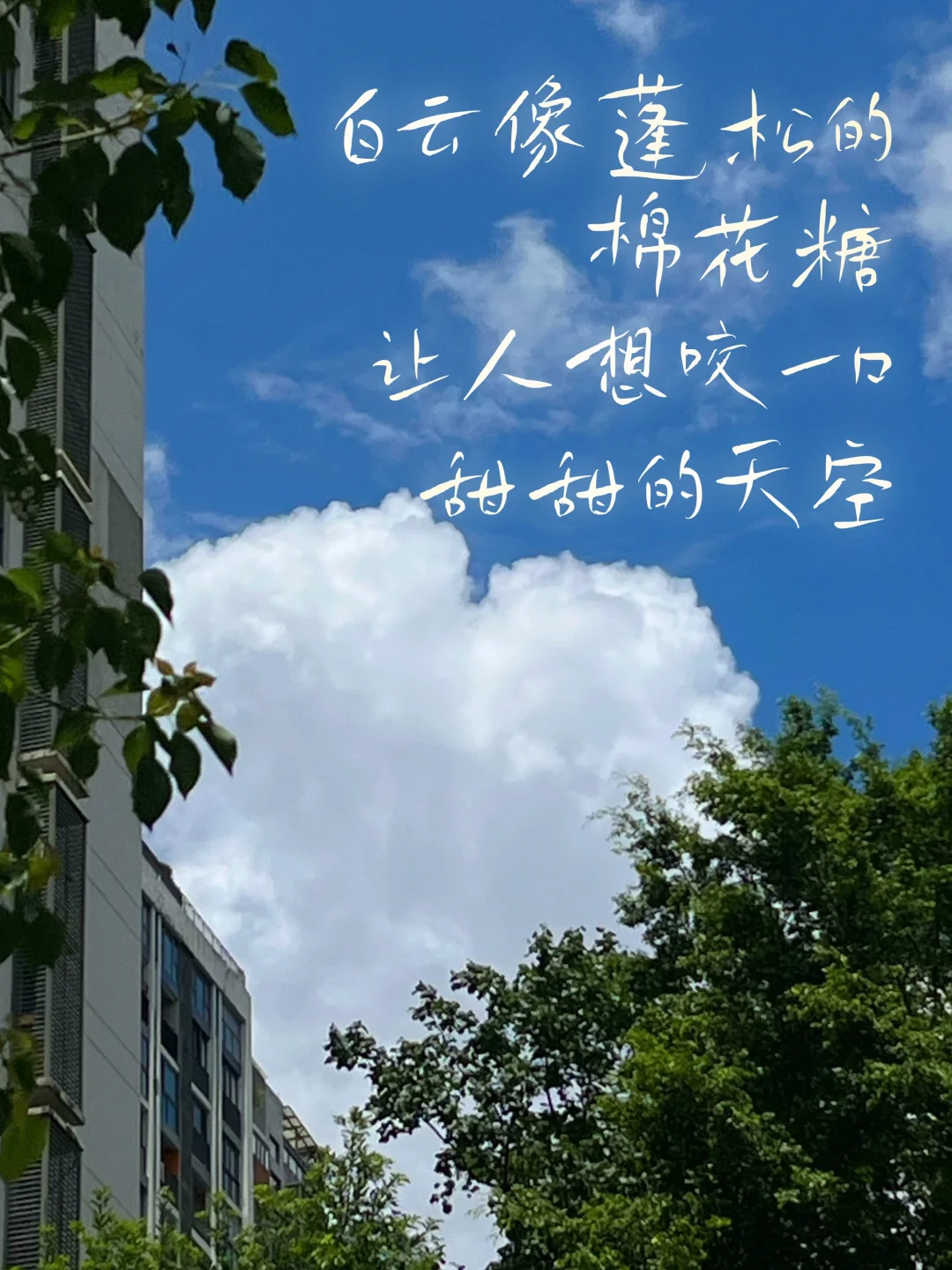 “白云像蓬松的棉花糖,让人想咬一口甜甜的天空。”