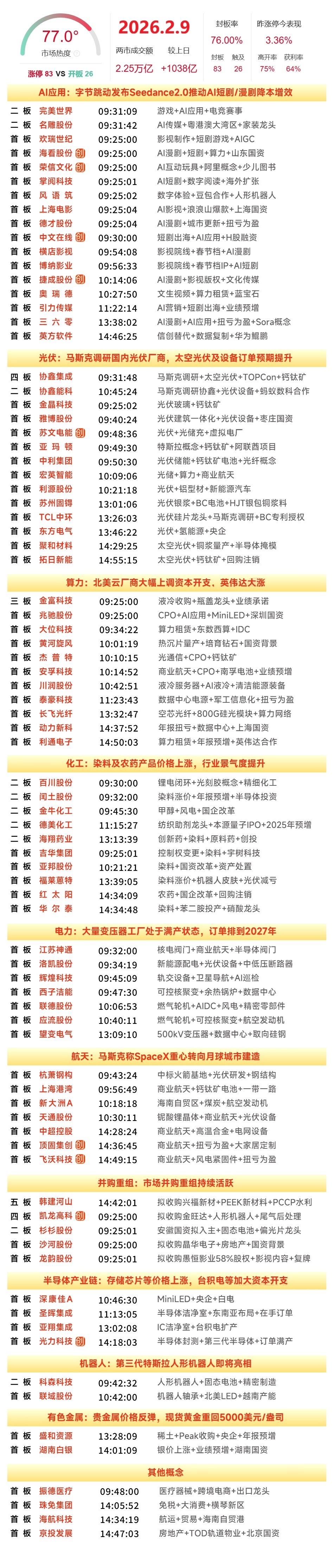 2月9日A股涨停个股与板块分析