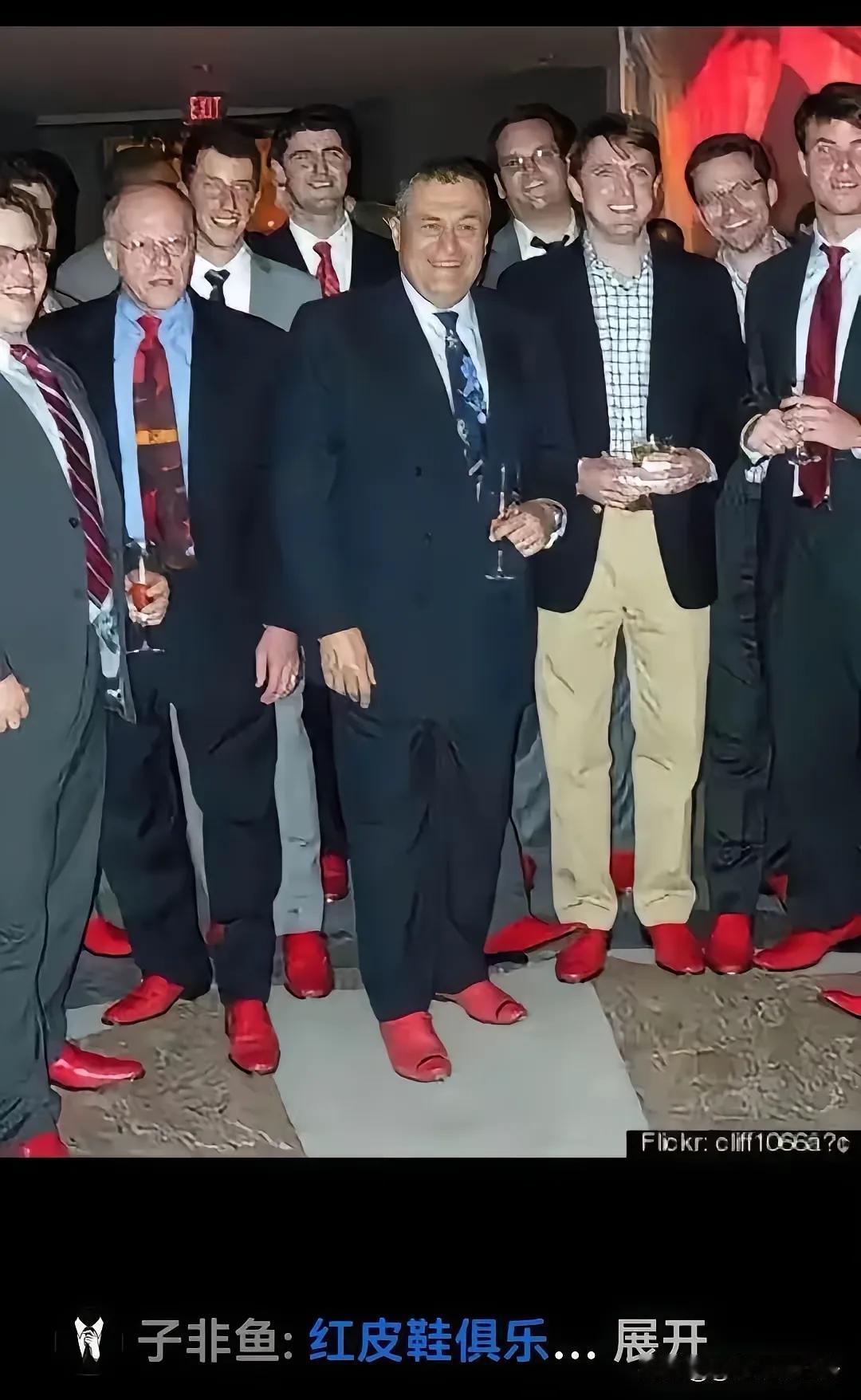 这一群老外是在参加什么聚会,怎么全部都穿着红色皮鞋。这些男嘉宾统一穿西装,打领带,脚上都踩着一双红色皮鞋,整个画面看起来带有一点点诡异的味道。 因此特意搜大红色皮鞋在西方的含义,没想到红色皮鞋在西方包含的意义挺多。 权力与禁忌, 16世纪欧洲贵族以红鞋彰显身份;教皇红鞋象征圣血与神职权威;安徒生《红舞鞋》中,红鞋是诱惑、虚荣与惩罚的符号,隐喻欲望的。