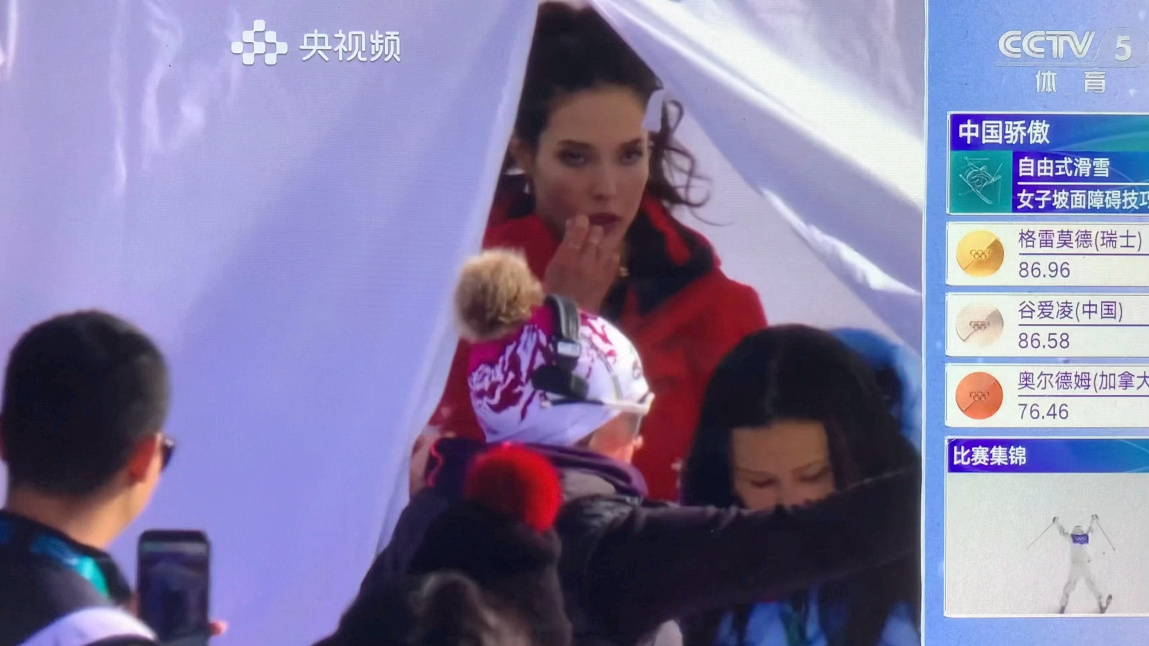 谷爱凌冬奥银牌上台领奖前整理整理补补妆好真实冬奥会