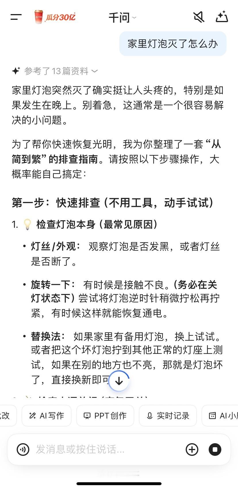 易烊千玺邀你上千问AI购物 千问一直都有在用啦,生活工作现在我都离不开AI了,今天家里的小灯泡坏掉了,试着问了一下千问,直接回答我应该怎么排查问题!而且千问真的很大方,一上来就给我给了张25元免单卡,免单卡可以在千问里买天猫超市的引流零食、还有家居日用、生鲜水果等,一句话下单就能送到家门口、超级方便!!我拉我的舍友们一起入坑,刚好宿舍有个女孩特别喜欢易烊易烊千玺哈哈哈。她狂说易烊千玺代言的东西就是好哈哈哈笑鼠了千问免单