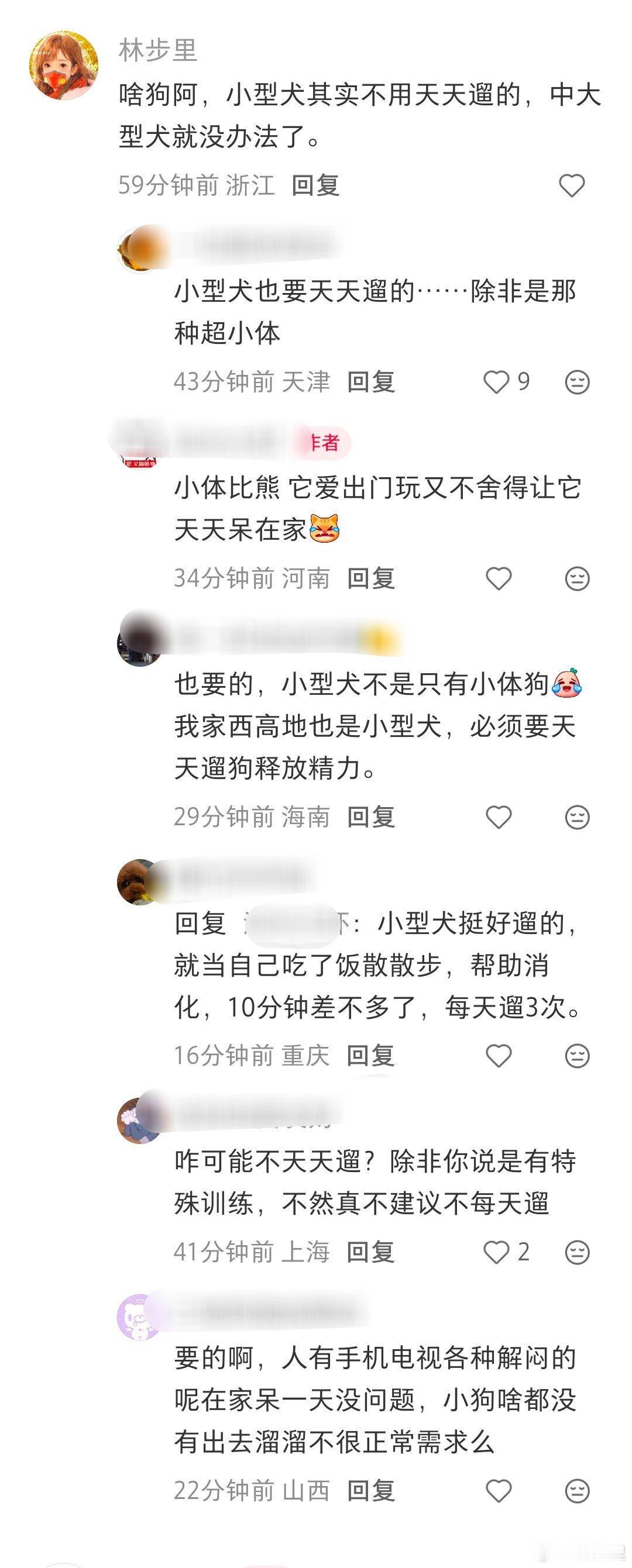 于是,我写了一句小型犬其实不用天天遛的。