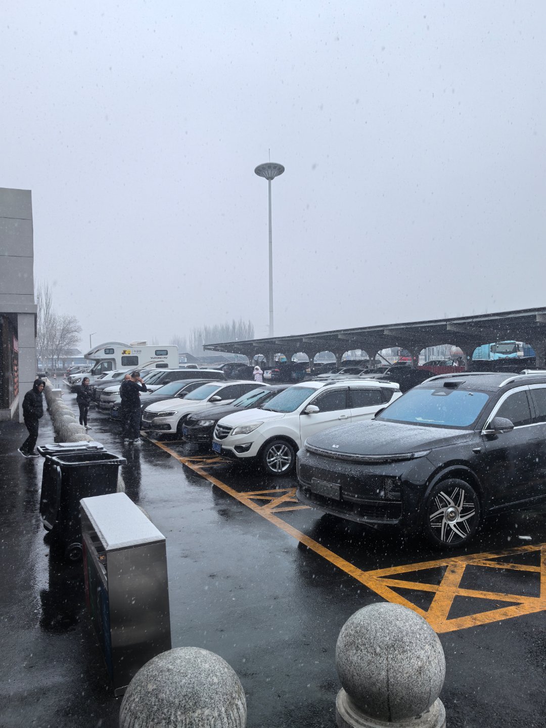 人在囧途之体验冬天电车一天开1000km高速,半路遇到雨夹雪还得排队充电,最要命的是一路都是标称120kw实际只能跑到60kw的桩晚上最后一站遇到理想的2C桩,起步直接190kw真的感觉救了命了 渭南·富平服务区