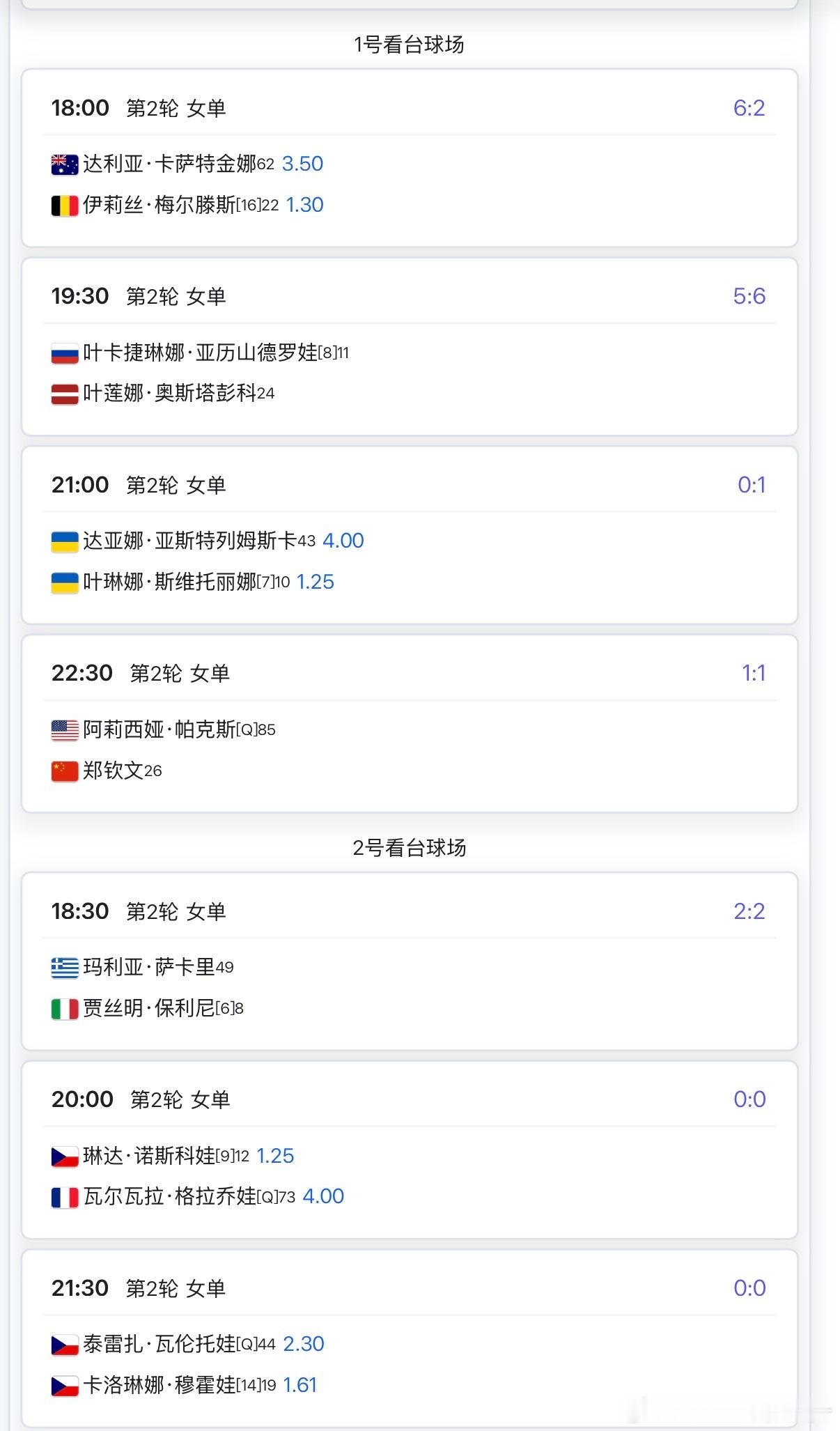 💃🏻💃🏻女双19:00🇨🇳蒋欣玗/🇳🇴爱克里vs 🇮🇹保利尼/埃拉尼20:30🇨🇳张帅/🇧🇪梅尔滕斯vs🇷🇺施内德/帕诺娃