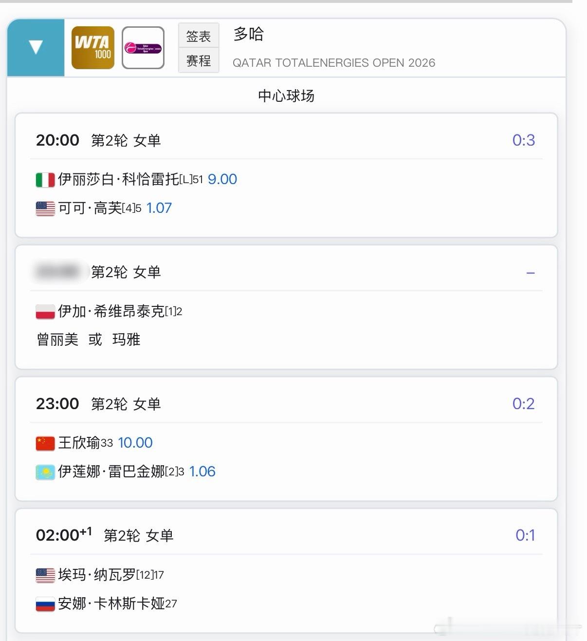 🔵WTA1000多哈2月10日焦点赛程🔥