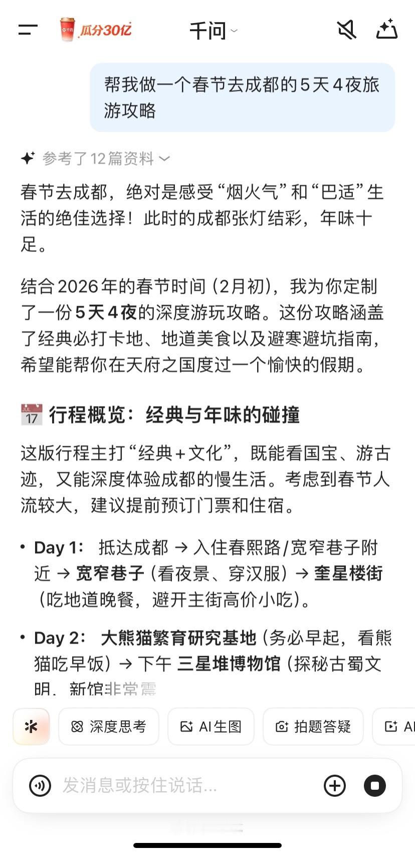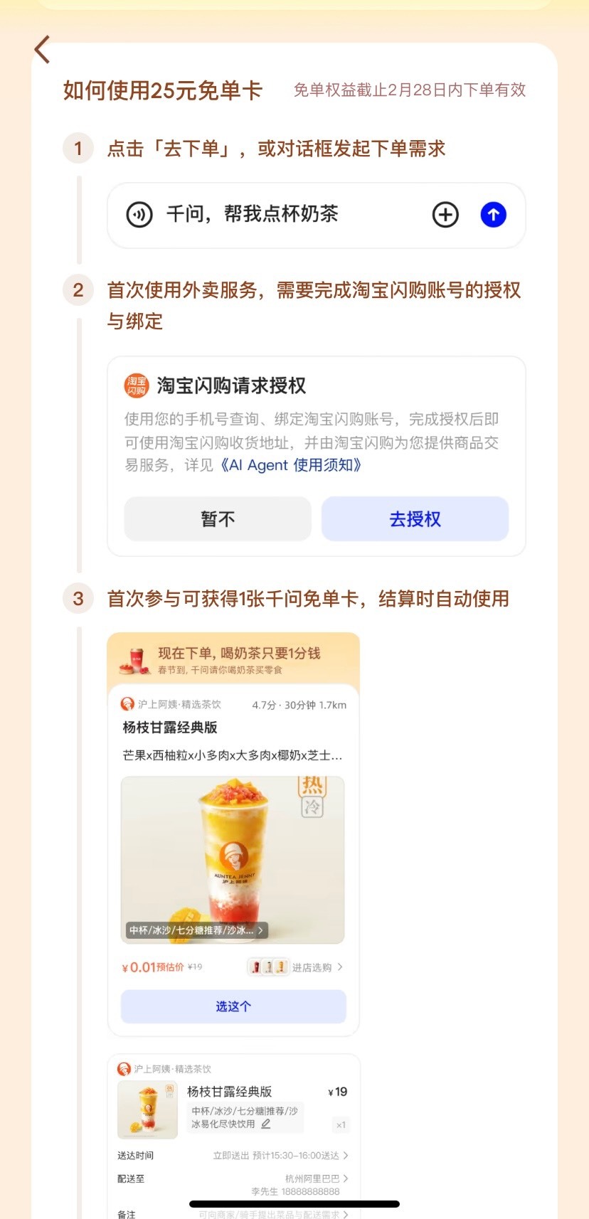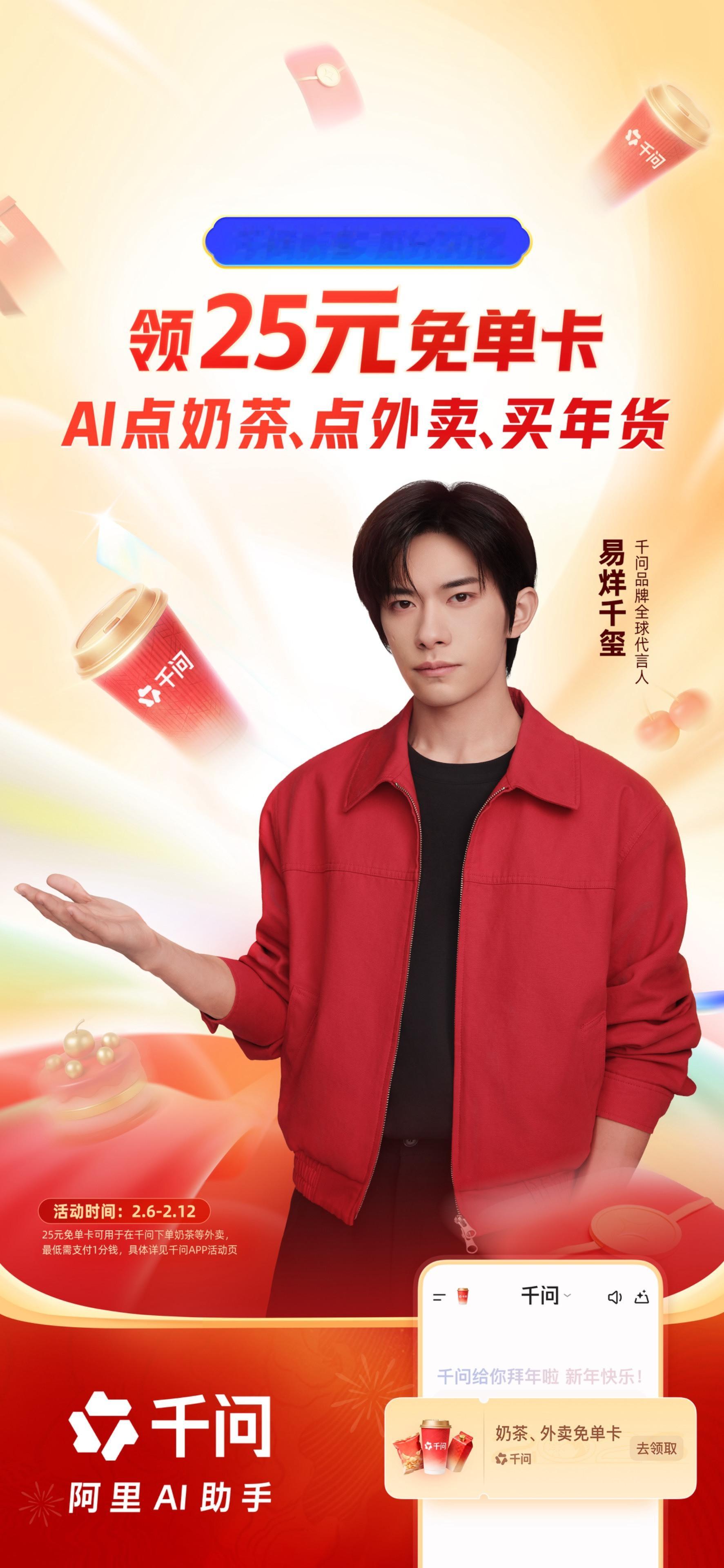 易烊千玺邀你上千问AI购物易烊千玺厉害,又喜提一个代言人!还是咱们千玺会选择,千问老用户了,之前就下载了,本旅行焦虑症患者这次春节带孩子出门前终于有救了,一句“帮我生成旅行清单”,瞬间列出超全物品表,本P人照着查漏补缺就行。而且这次千问福利很是很用心了,这张25元免单卡是真金白银的去给到用户。快过年了,想要补补家里的生活用品,顺手就在千问。这体验也太“易”术了!千问免单