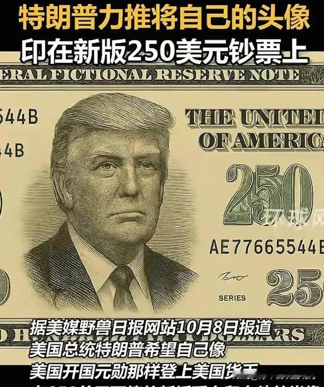 美国历史上第一位二百五总统即将诞生,就是当今美国总统特朗普,他要求在钞票上印上自已的肖像,一般钞票上印的是对国家有贡献总统,并且都已过世,特朗普到好,为了自已“荣耀“,他不管这些,显示自己的威望,好不好笑,而且钞票面值是250美元,不过从中国数字文化,这完全体现特朗普这种特质,要自己250流芳百世。 美国印钞票的规矩摆了上百年,只给过世的、对国家有实打实贡献的总统上钞,活着的人想把脸印上去,等于直接踩碎美国长久以来的政治传统。特朗普不管这套,他要的不是历史认可,是当下的热度和铁粉的死心塌地。 他心里比谁都清楚,能不能真印出来不重要,闹得人尽皆知才是目的。媒体一报道,支持者一欢呼,他的形象就又立住了——敢打破规矩、只做自己、为美国争面子的强人。这种操作对普通选民特别管用,不用讲大道理,一个出格举动,就能把忠诚票仓攥得更紧。 250这个数字,他不是不懂其中的调侃意味,只是在他的逻辑里,争议就是流量,调侃就是关注。建国250周年只是个由头,把自己和国家百年纪念绑在一起,等于强行给自己贴历史伟人的标签,让支持者觉得他和华盛顿、林肯是一路人。 他更想借着这件事,敲打党内对手和反对他的势力。敢推动印肖像,就是在秀自己的掌控力,告诉所有人,他能主导议题、能改变规则,不听他的人都会被边缘化。这不是爱面子,是在巩固权力,为接下来的布局铺路。 美国的法律和传统摆在那,这事大概率成不了。可成不成根本不重要,特朗普要的是过程中的关注度、支持者的狂热、对手的难堪。一场看似荒唐的印钞闹剧,本质是精准的政治表演,每一步都算好了能收割多少眼球、巩固多少基本盘。 以上是小编个人看法,如果您也认同,麻烦点赞支持!有更好的见解也欢迎在评论区留言,方便大家一同探讨。