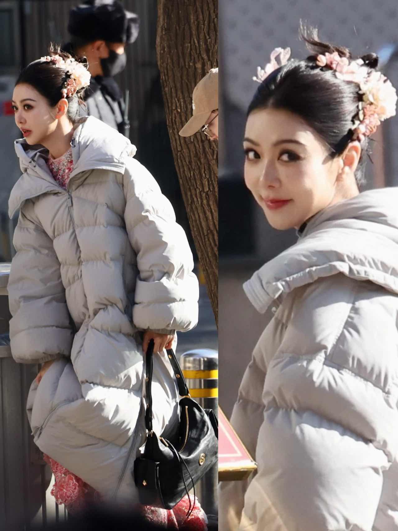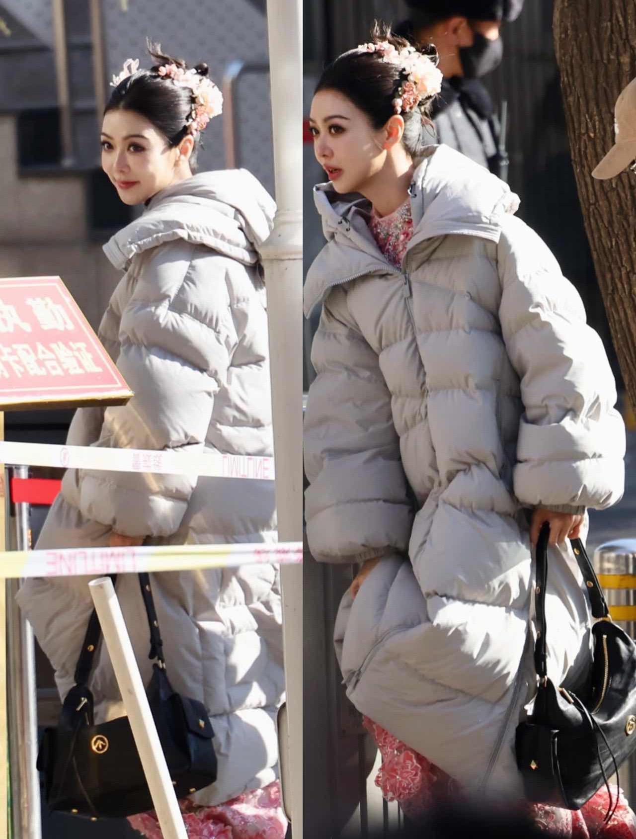薛凯琪春晚彩排穿搭。薛凯琪春晚彩排,穿了米色羽绒服搭配一只个乐吐司ho...