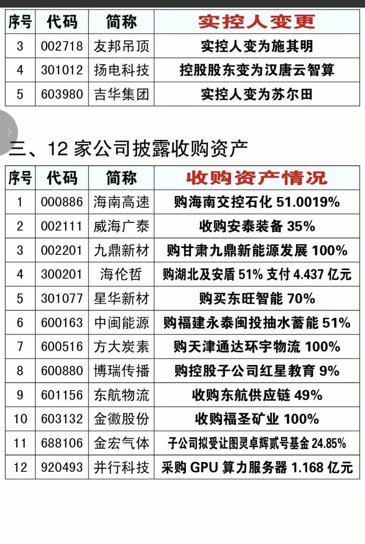 2.10周二 最新:资产重组、股权转让、实控人变更公告! 17家公司股权转让公告, 12家公司披露收购资产,增加营收 3家公司出售资产,剥离不良资产 5家披露实控人变更,改变主体 10家公司披露资产重组