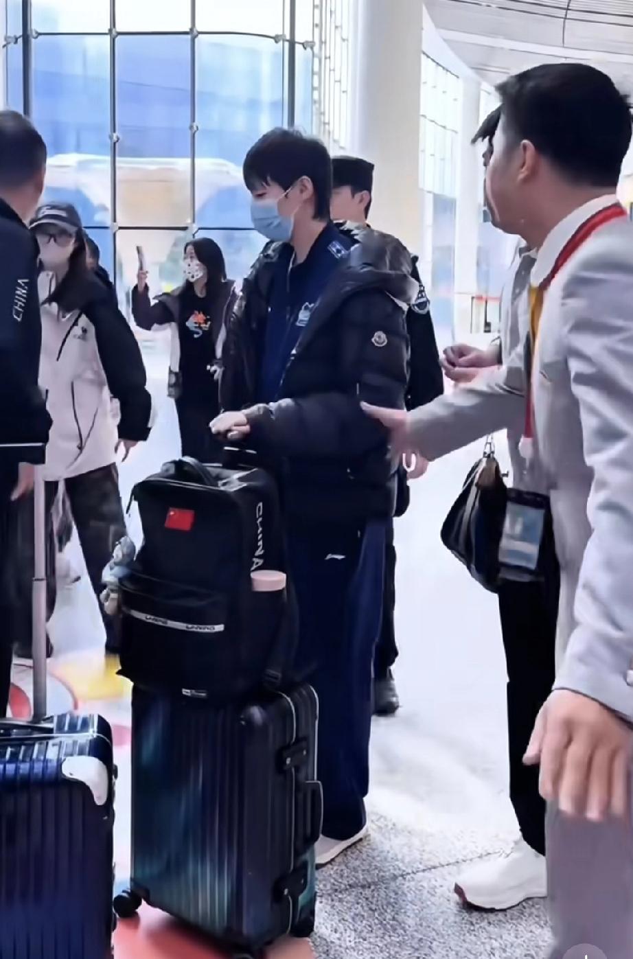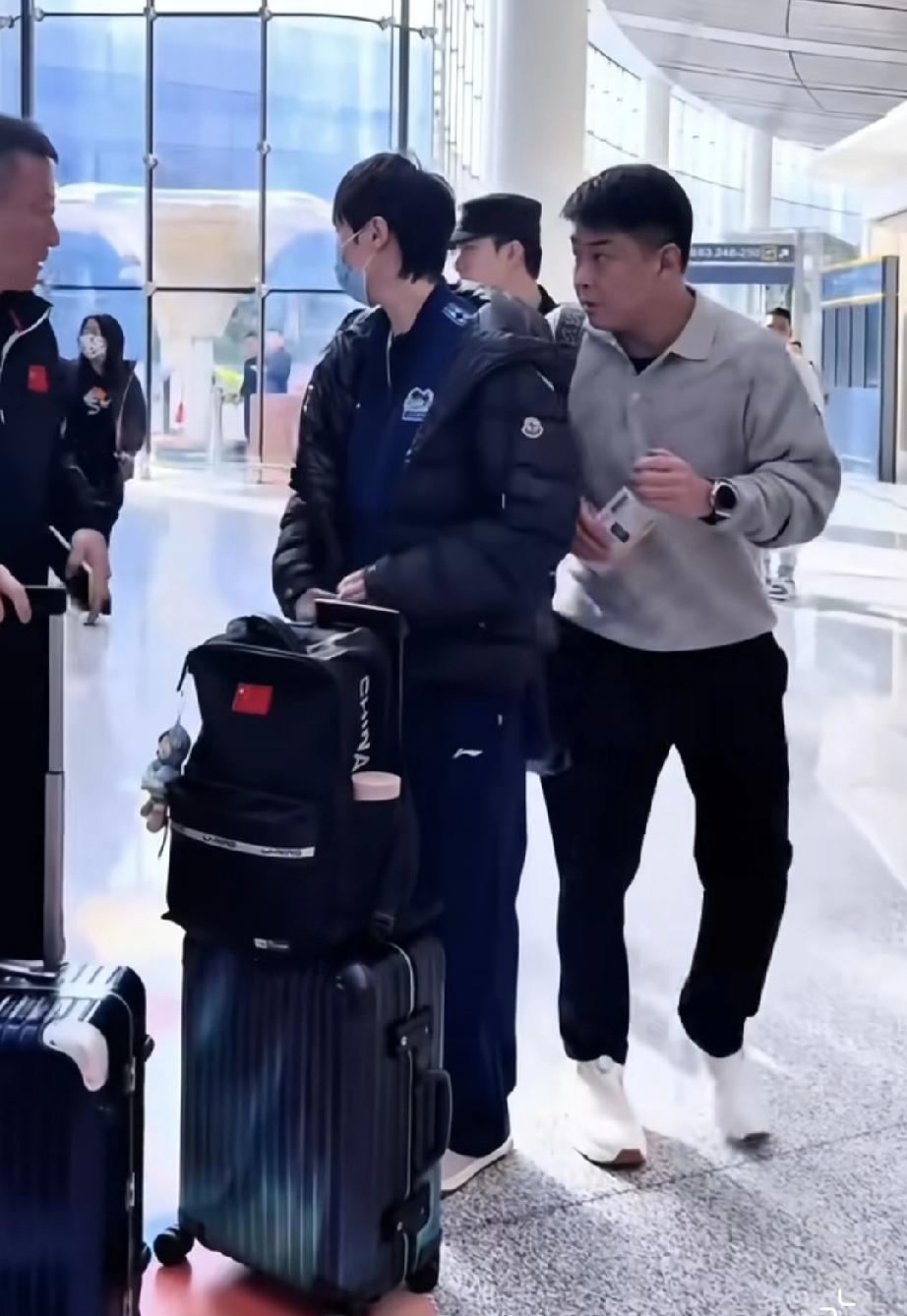 被王皓指导这个鬼鬼祟祟的样子逗笑了!国乒从海口返回北京,王曼昱发现兜里什么东西不见了,就停下来找。马琳教练和王皓教练从后面走过来,问问曼昱发生什么事情,尤其是王皓教练,鬼鬼祟祟的样子,但是非常关心曼昱哈! 随后,在工作人员提醒下,曼昱就继续往前走了!估计是把什么东西交给徐奕妹妹拿着,自己忘了拿回来!