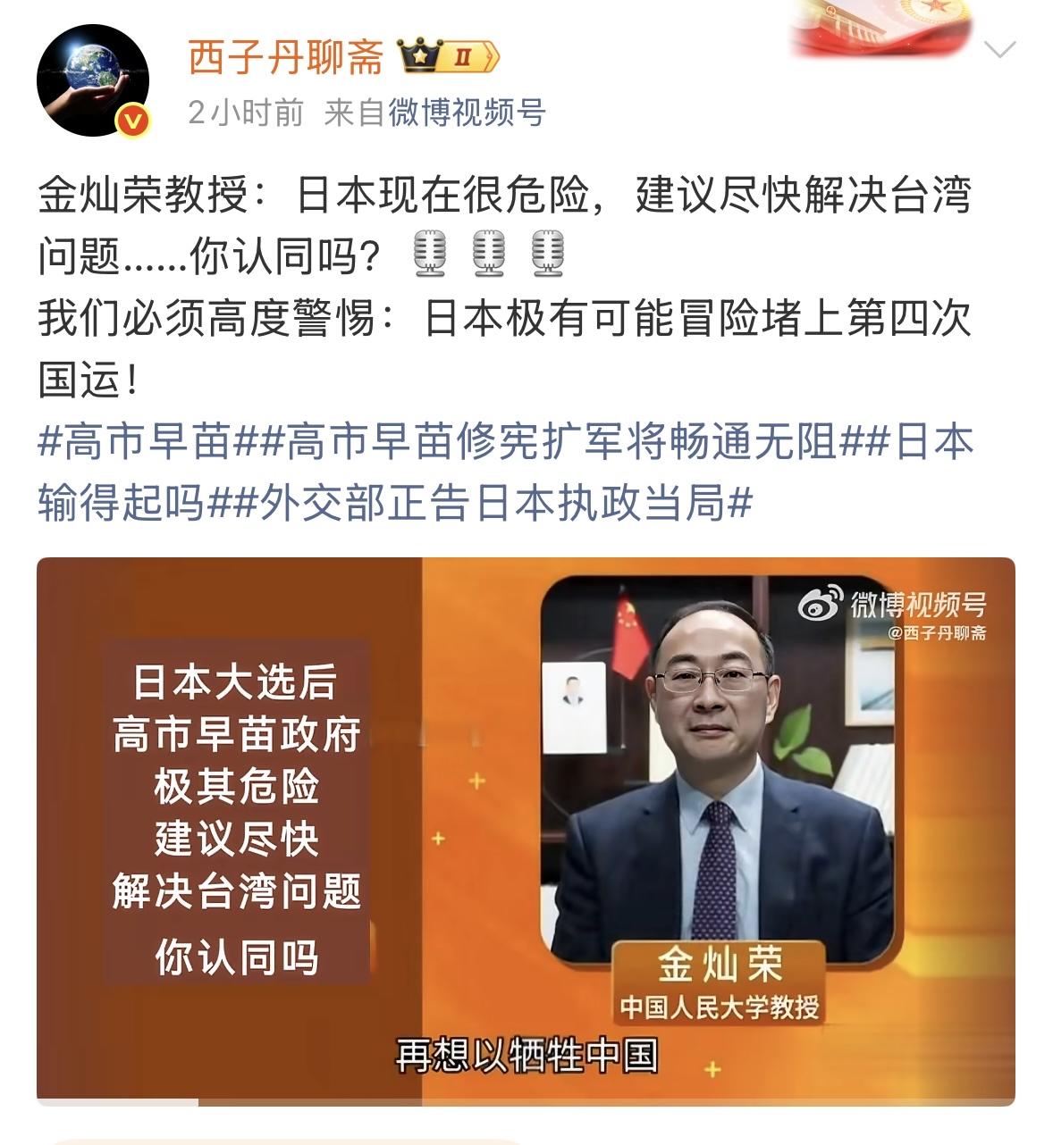 张维为也提出过这个建议,这两个教授观点一致,不知道出发点是不是一样?解决台湾问题,就是解决日本问题,日本问题你想不想解决,都要面对日本,难道他们不知道吗?解决日本,就是一个日本,解决台湾就是日本和台湾,哪个更容易解决?先易后难?还是先难后易?
