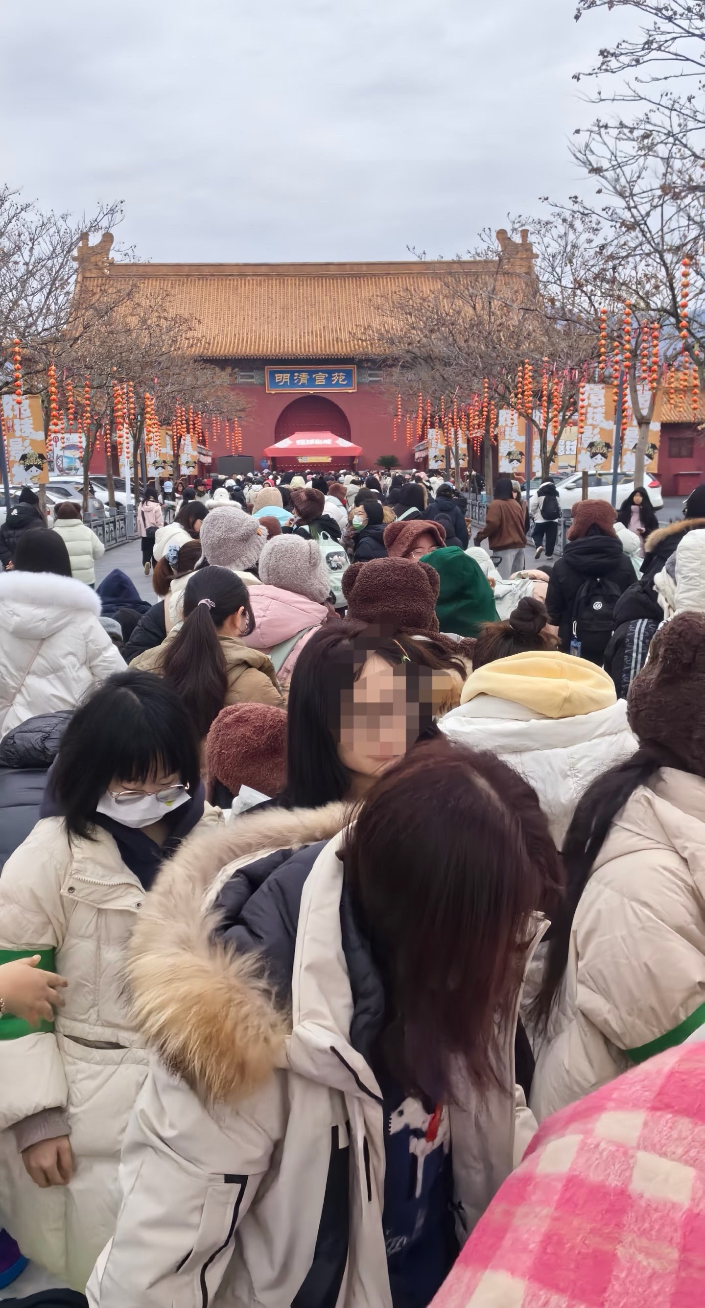 张天爱跟素人合影,胯真的好宽,大宅院似的