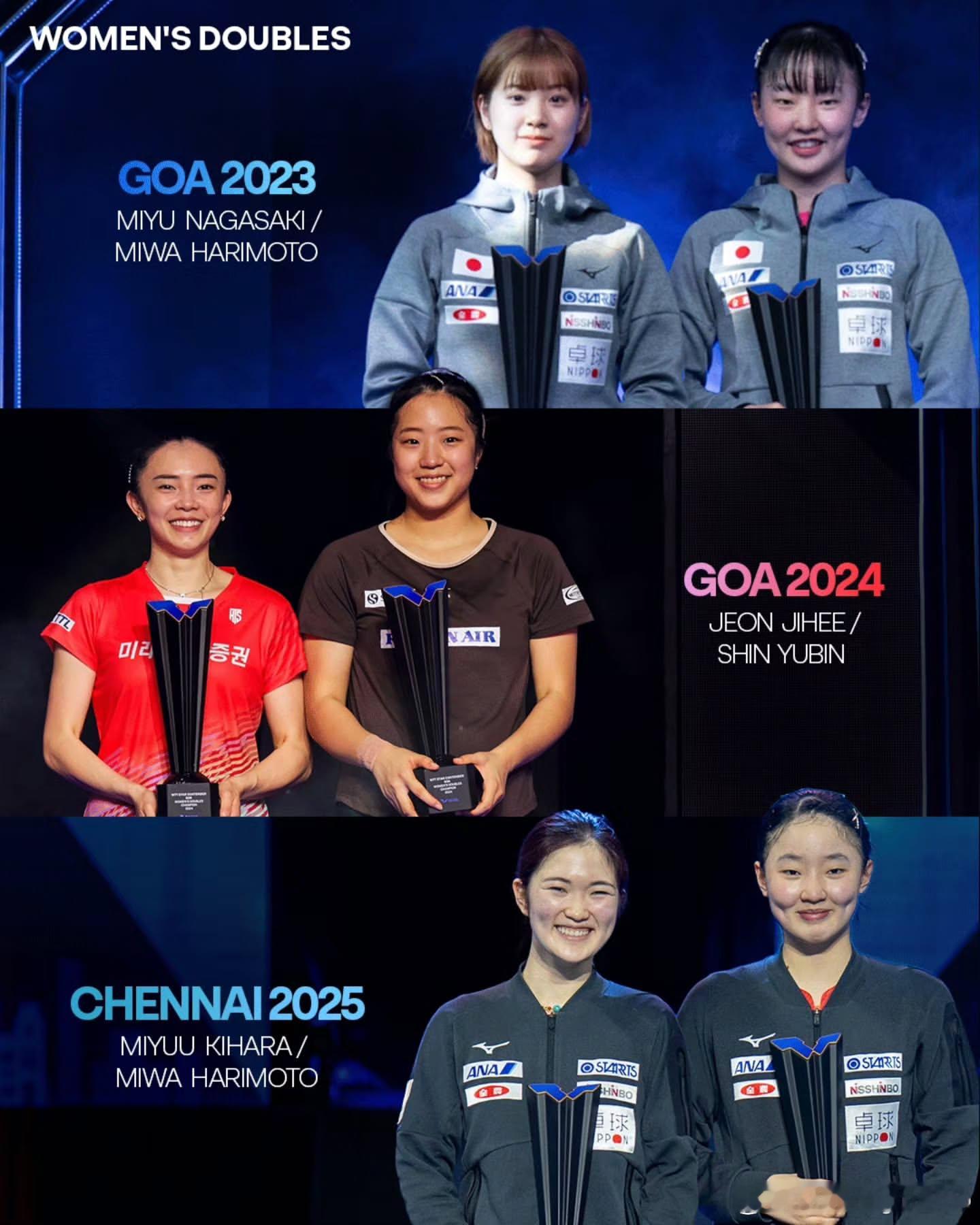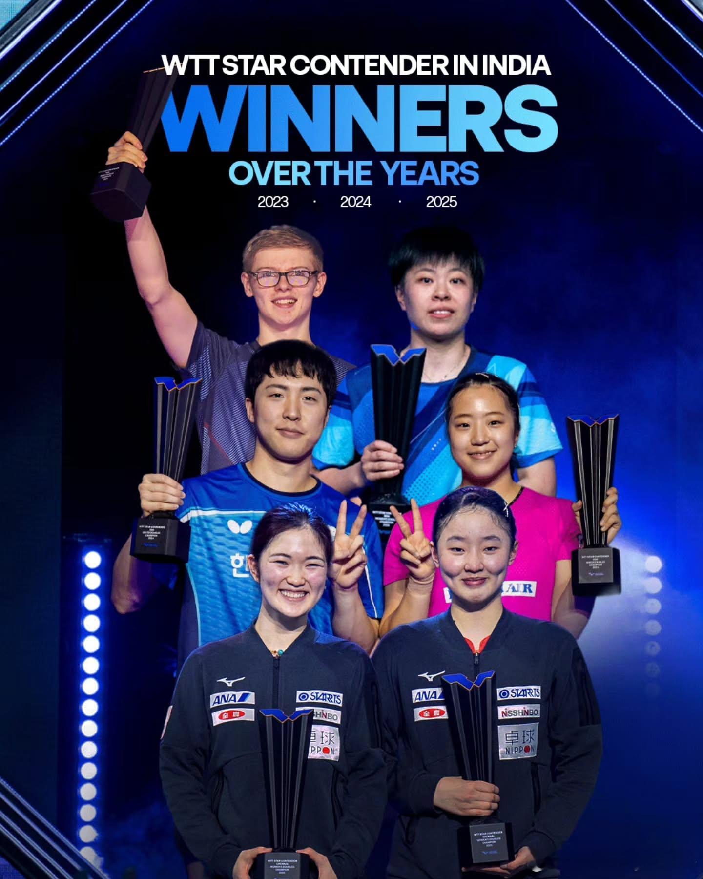 WTT球星挑战赛金奈战2026 今日开赛回顾2023-2025印度举办的WTT球星挑战赛历届各项冠军得主🏆