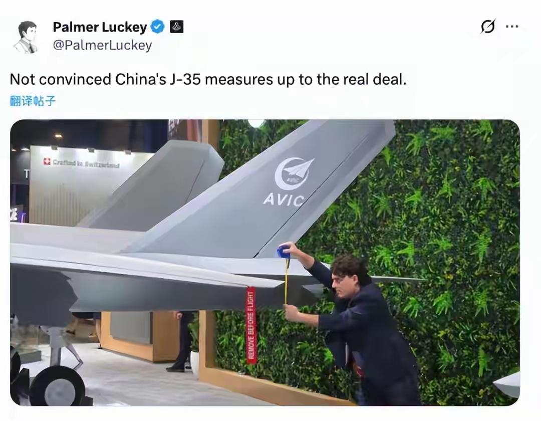 你们活又活不起、死又没勇气的样子真丢人! 2月6日的新加坡航展上发生让人哭笑不得的一幕: 美国安杜里尔工业公司创始人帕尔默·拉奇用卷尺去量咱们家歼—35a1—2模型机的机翼,最后在社交媒体发文称:“并不认为歼—35名副其实……” 我也是…… 有时候我真的怀疑西方这帮孙子为什么总是干出一些想露脸偏偏露屁股的事情? 是不是同类相食让他们的脑子感染病毒了。 别说飞机了,就是普通的机械,那个东西的尺寸不是精确到毫米、丝米,甚至纳米。 你用个卷尺量算怎么回事? 如果飞机的外形尺寸偏差已经大到用卷尺可以测量出来,那这飞机还能飞吗? 更操蛋的是,他量的还是模型。 量了模型机,能推测出飞机性能? 咱也照方抓药: 我看了这老小子照片; 嗯! 一看他就是叶子抽太多,脑子烧坏了; 小脑已经萎缩。 他们的上帝召见他也就最近的事! 当然,我们不会玩这么低能、这么脏,我们自恃身份。 以前咱们家出新装备,他们就死咬一点:“没有实战检验,战力存疑!” 去年印巴战争,咱们家展览时只能盖块油布的歼10大显神威。 这个点他们不能再用了。 然后,他们为了证明咱们武器不行,竟然暴露自己的智商。 难道脸面这件事,他们真的如此不知珍惜? 俗话说:“树活一张皮,人活一张脸!” 脸都不要了,活着干嘛呢? 扯根毛上吊得了! 不干人事的玩意!