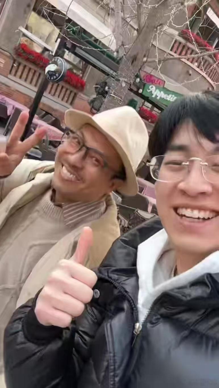 张天爱跟素人合影,胯真的好宽,大宅院似的