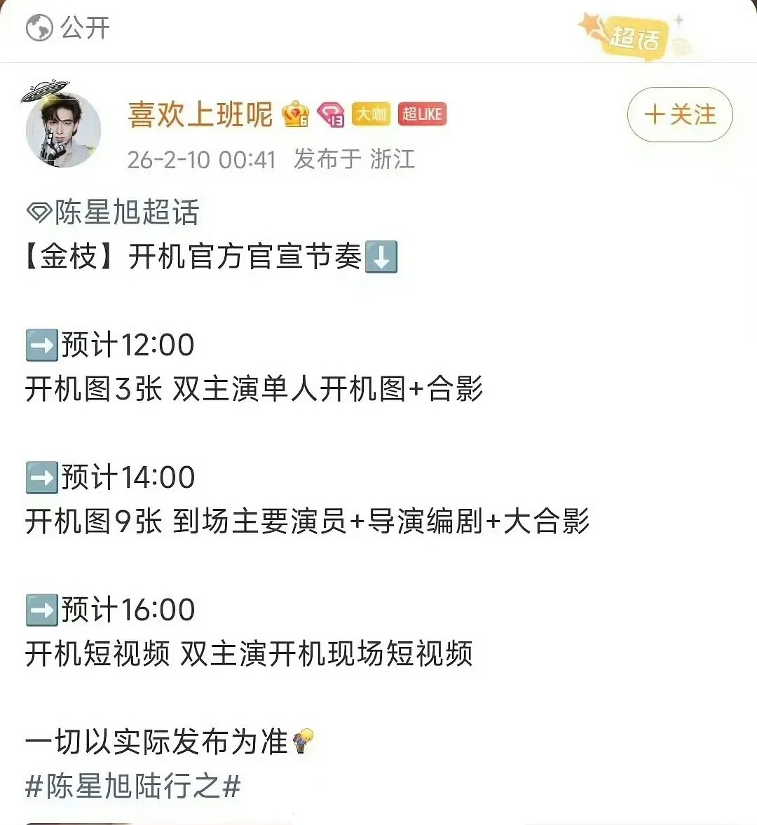 李一桐陈星旭《金枝》今日开机,李一桐平番在前,但男主陈星旭这边提前发布了剧组官宣