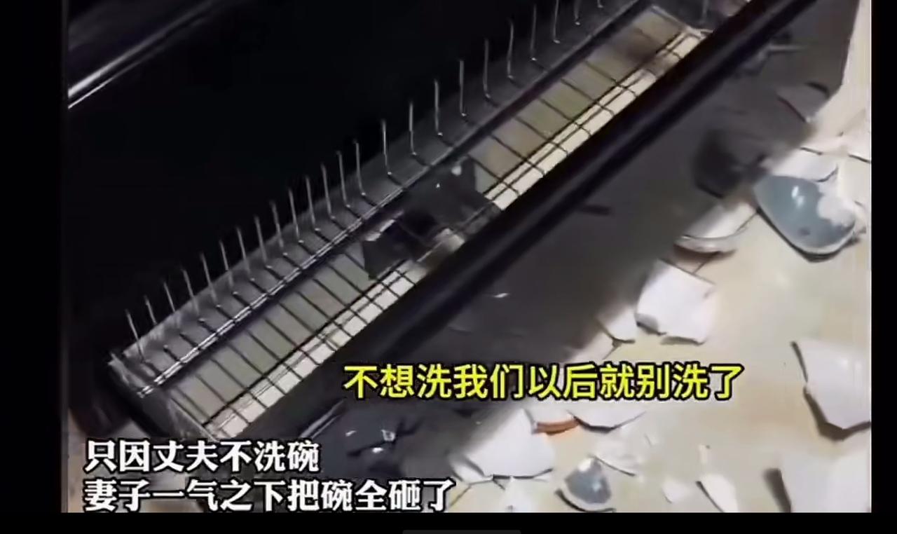 媳妇正在夹菜,朋友疯狂转桌。男子笑脸暴起,下手抓盘,把菜丢妻子碗里。妻子身上被溅
