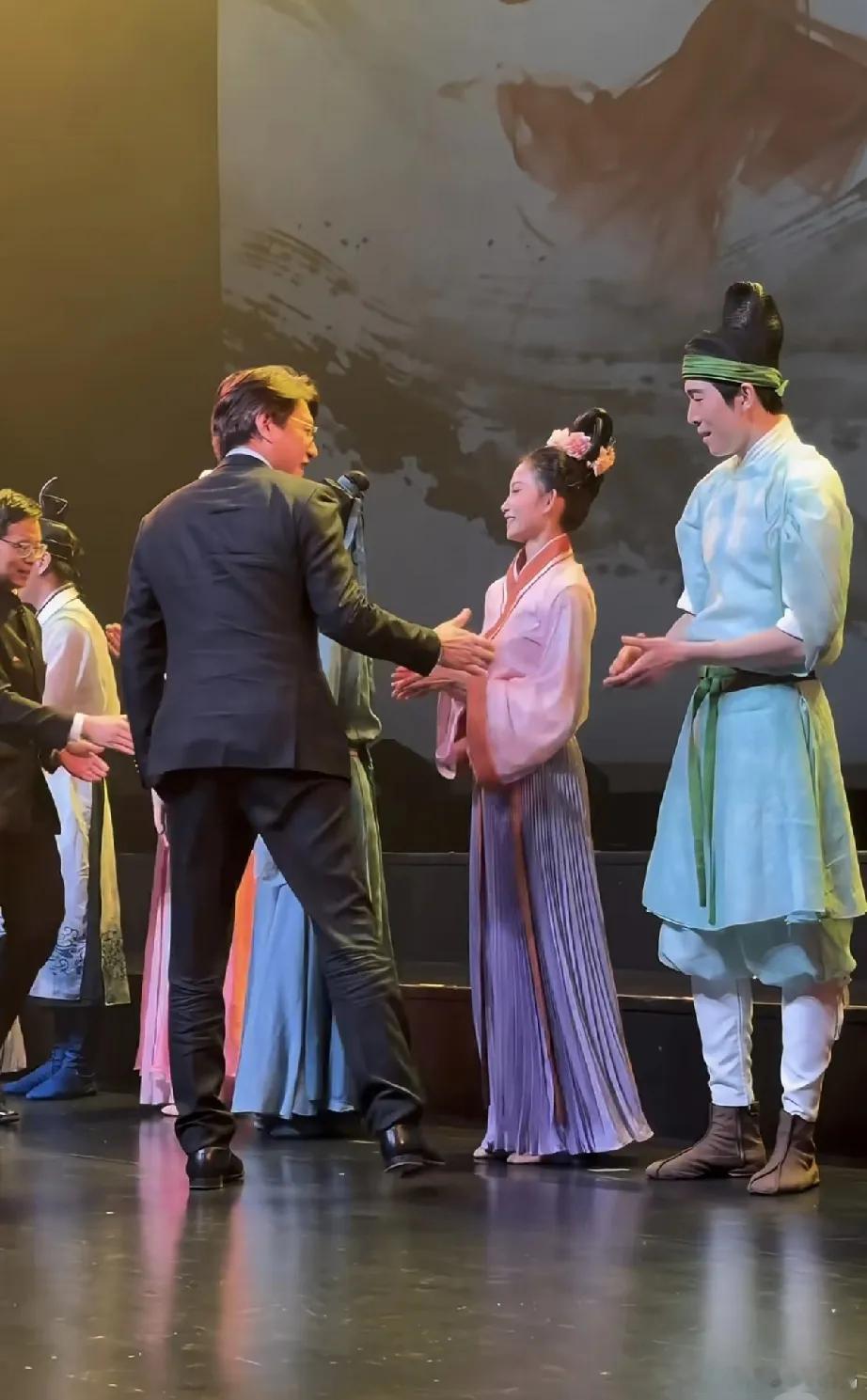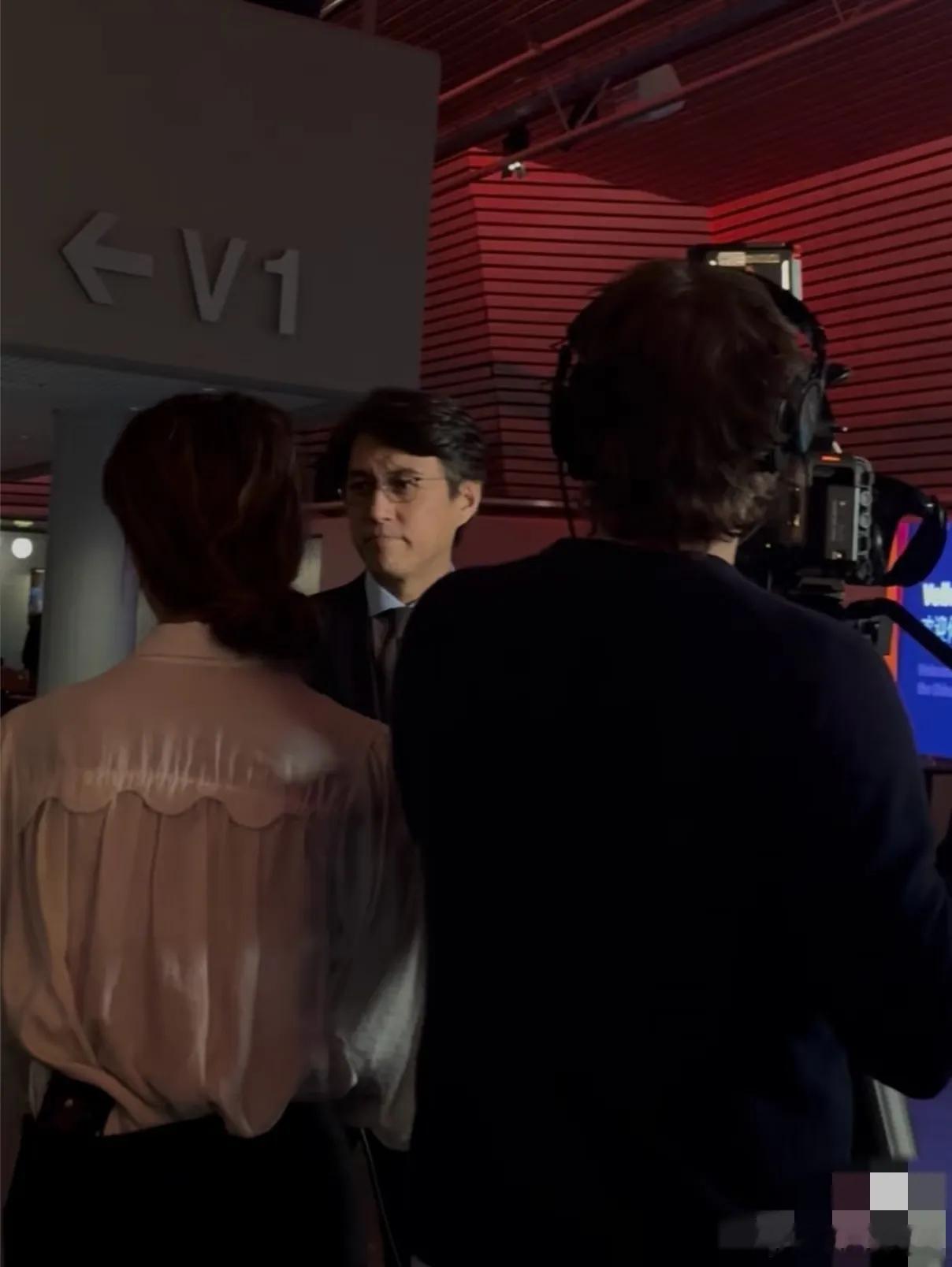 这次到冰岛参加演出,靳东依旧戴了一副眼镜,穿着西装打了领带,但与在国内的状态完全不一样。