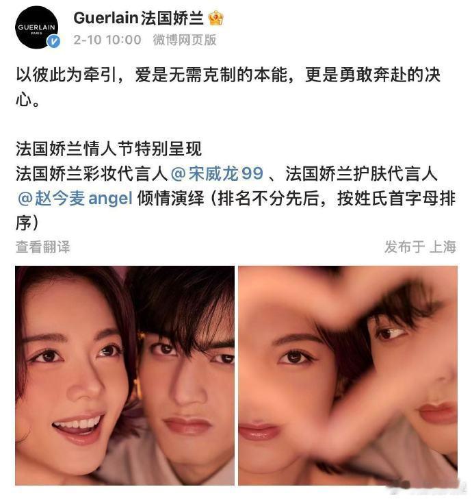 情人节糖分已锁定!宋威龙、赵今麦贴脸比心,每一帧都甜到心坎里。宋威龙赵今麦比心合照龙麦情人节比心贴脸照