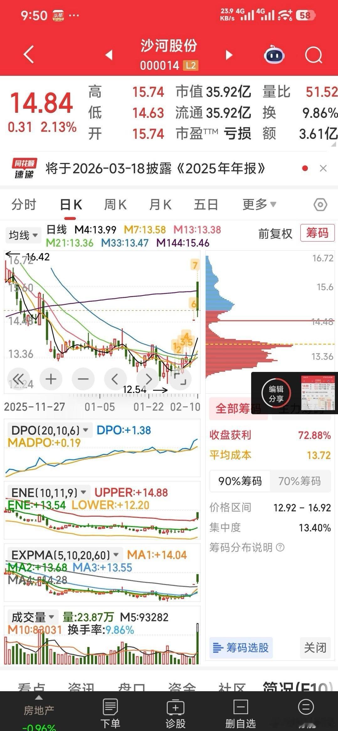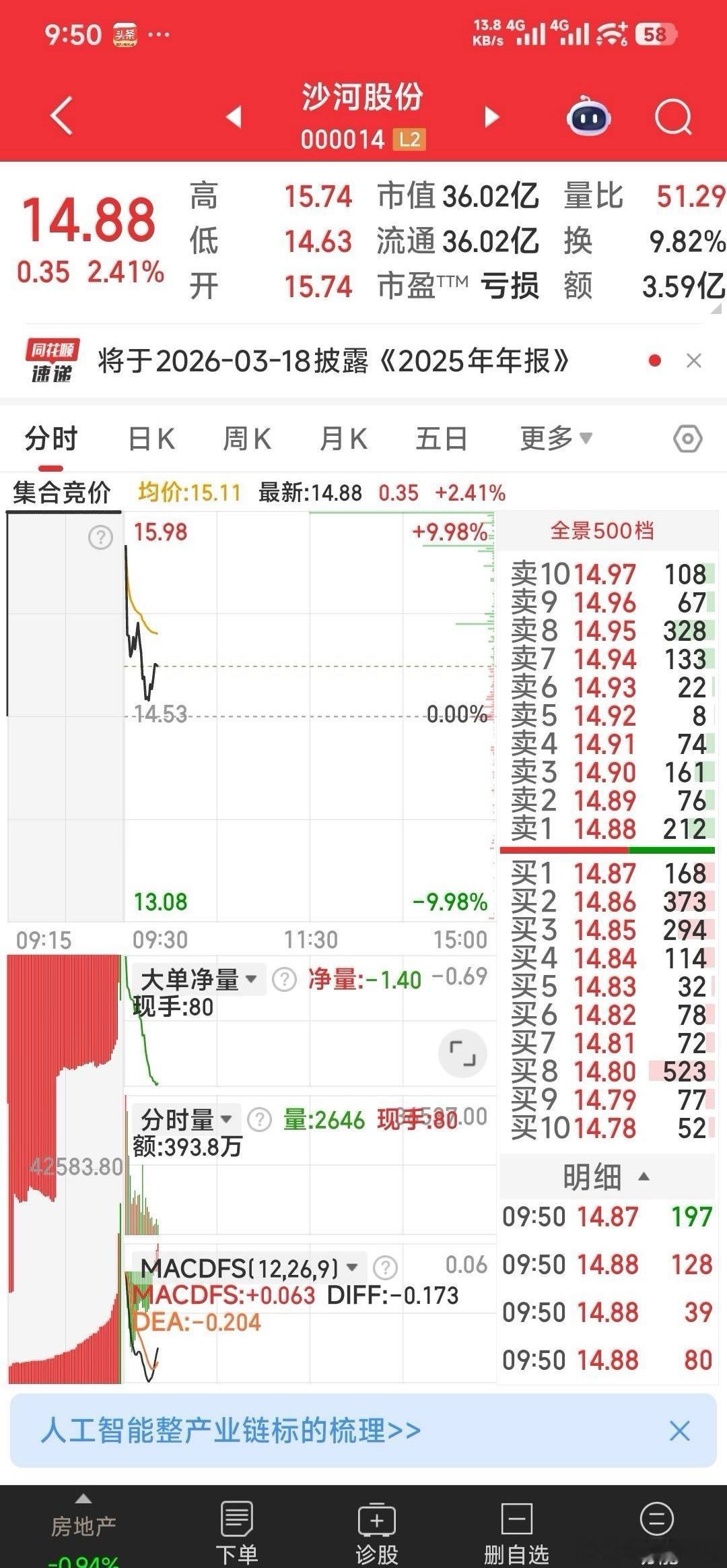 2,保变电气小损暂出,14.69元建仓昨天没机会上车的沙河股份。
