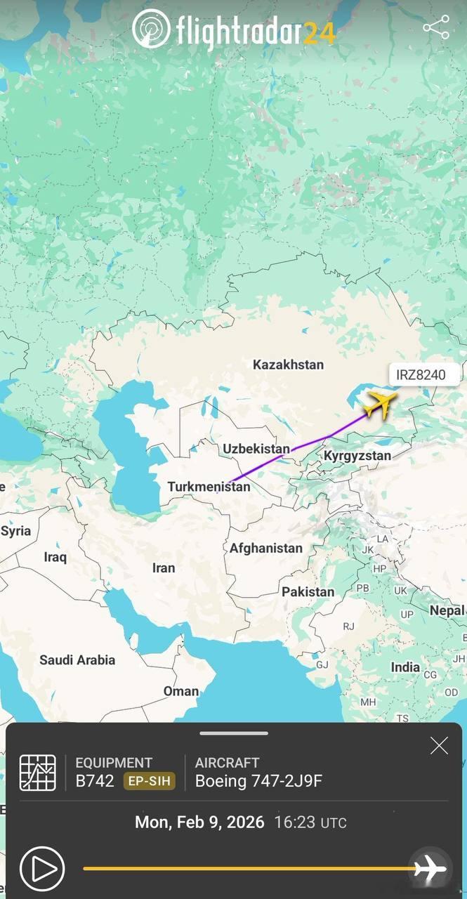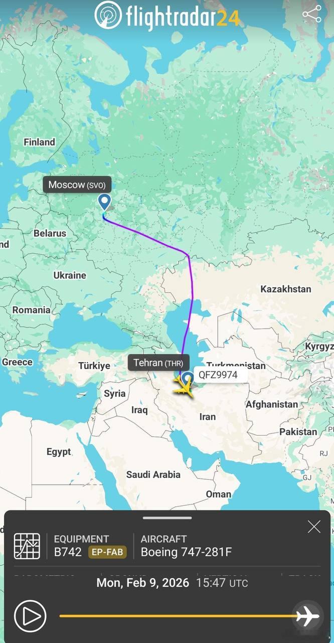 美伊对峙 这段时间伊朗的波音747货机很忙碌不停的往俩国家飞。其中昨天,一架伊朗波音 747 货机从莫斯科降落在德黑兰,另一架波音 747 从德黑兰起飞,前往。。。不明目的地。