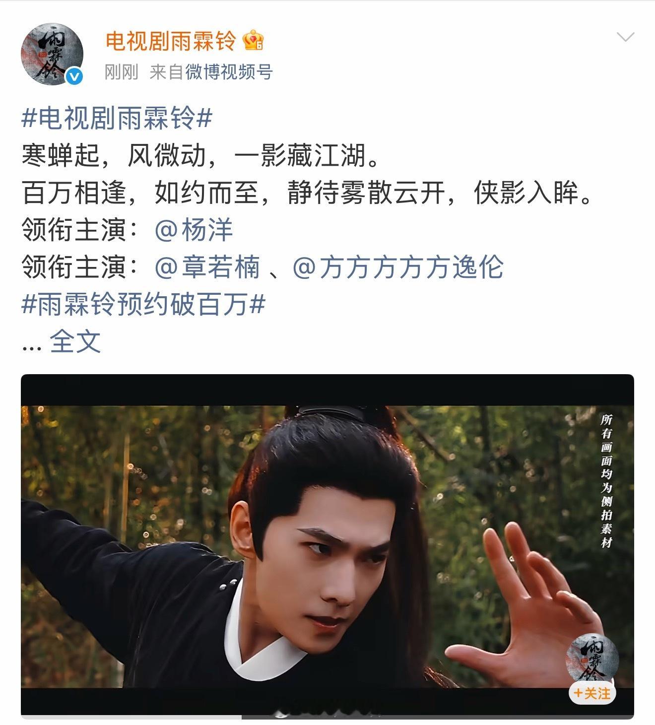 恭喜雨霖铃预约人数破百万,杨洋饰演的展昭大侠大戏太出彩了,完全是视觉享受。