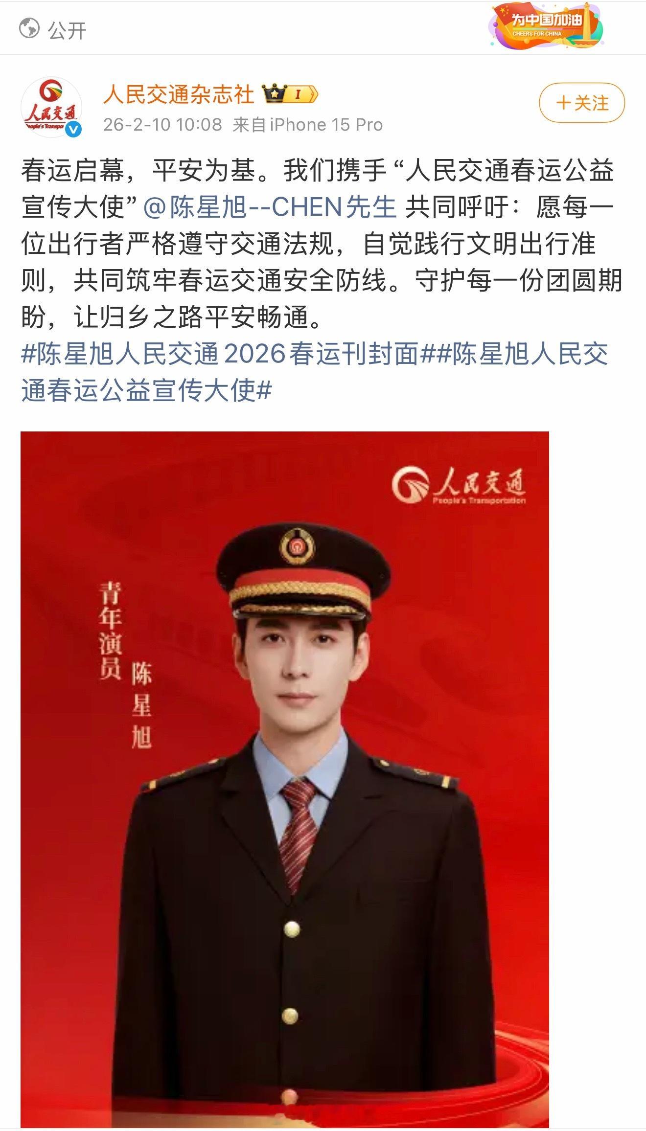 人民交通春运公益宣传大使陈星旭来啦,让我们一起严格遵守交通法规,自觉践行文明出行准则,共同筑牢春运交通安全防线。太正能量啦。