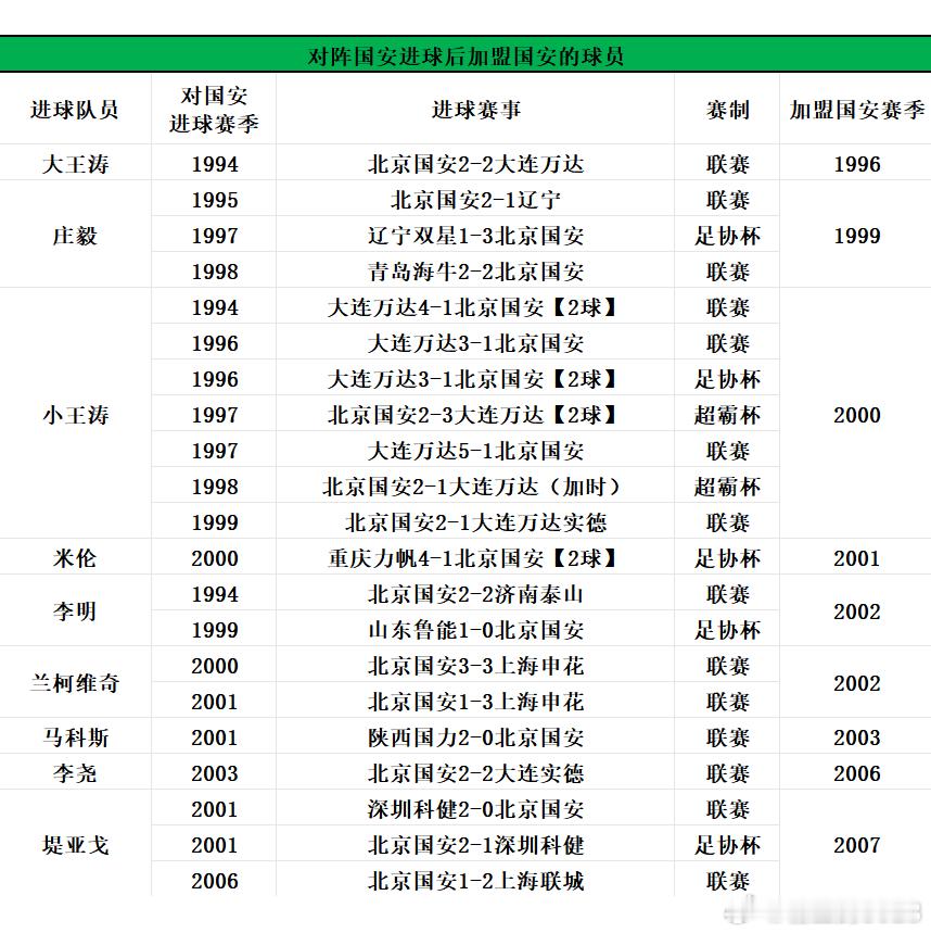对阵国安进球之后加盟国安的球员📊现役林良铭、杨立瑜、塞尔吉尼奥在列!大王涛:1