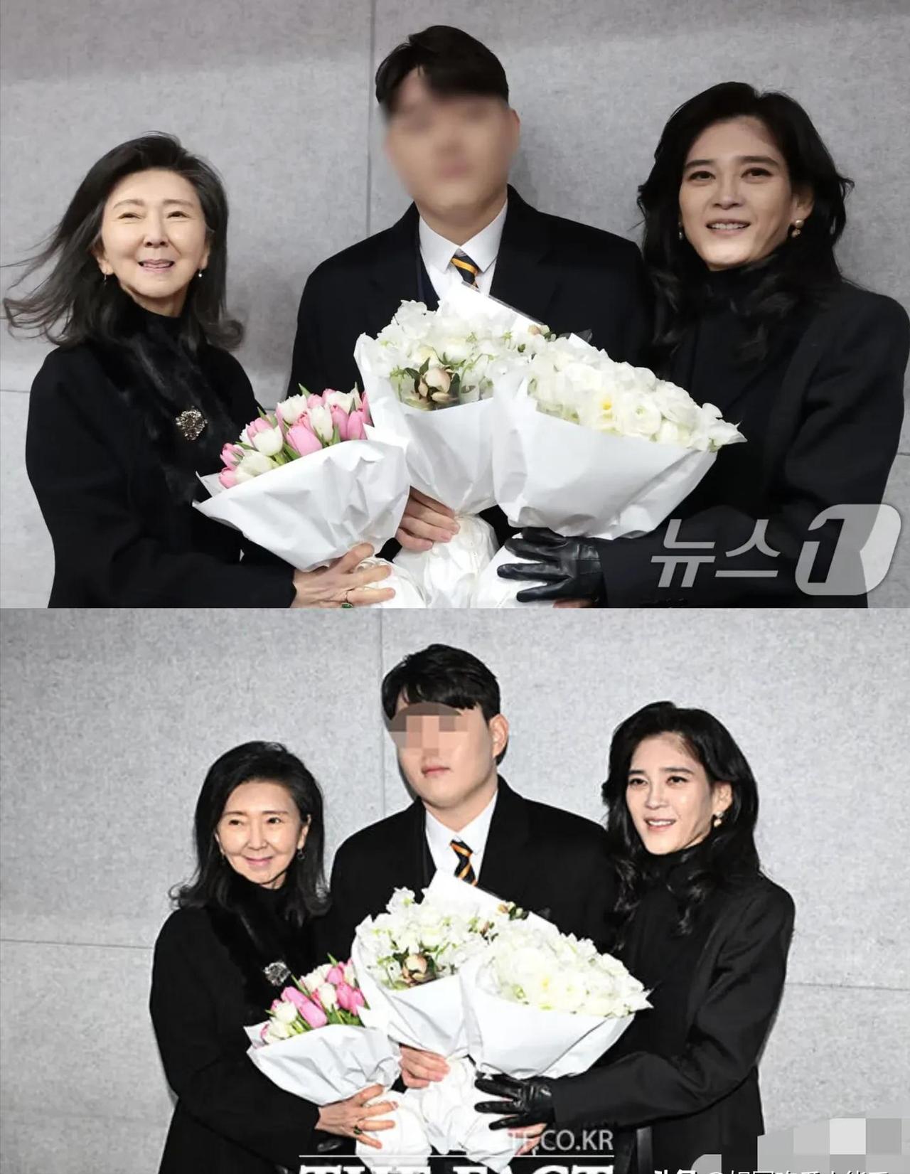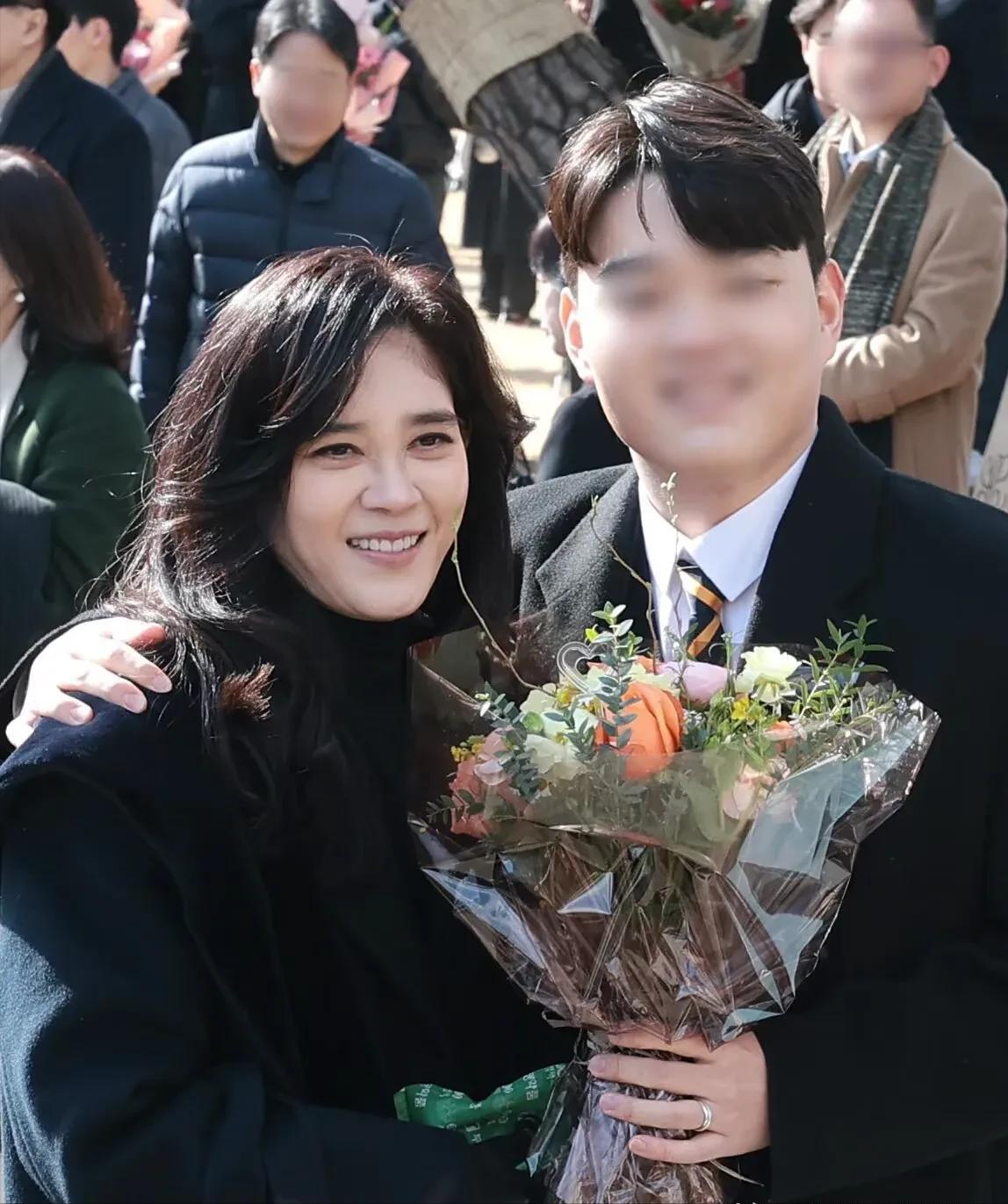 三星李富真的儿子高中毕业礼,作为妈妈,李富真带着小姨高高兴兴的出席了儿子的毕业典礼,还给儿子献花。 2月9日,李富真的儿子高中毕业,李富真和小姨亲自出席毕业礼,李富真穿着一身黑色大衣,大波浪卷发,完全看不出来如今的她已经55岁了,优雅又时尚。 和儿子同框合影,丝毫看不出年龄差,不知道的还以为两人是姐弟呢? 李富真亲自给儿子献花,仪式感满满,和儿子一人捧着一束鲜花合影时,那望着儿子的眼神,满是母爱和以子为荣的自豪。