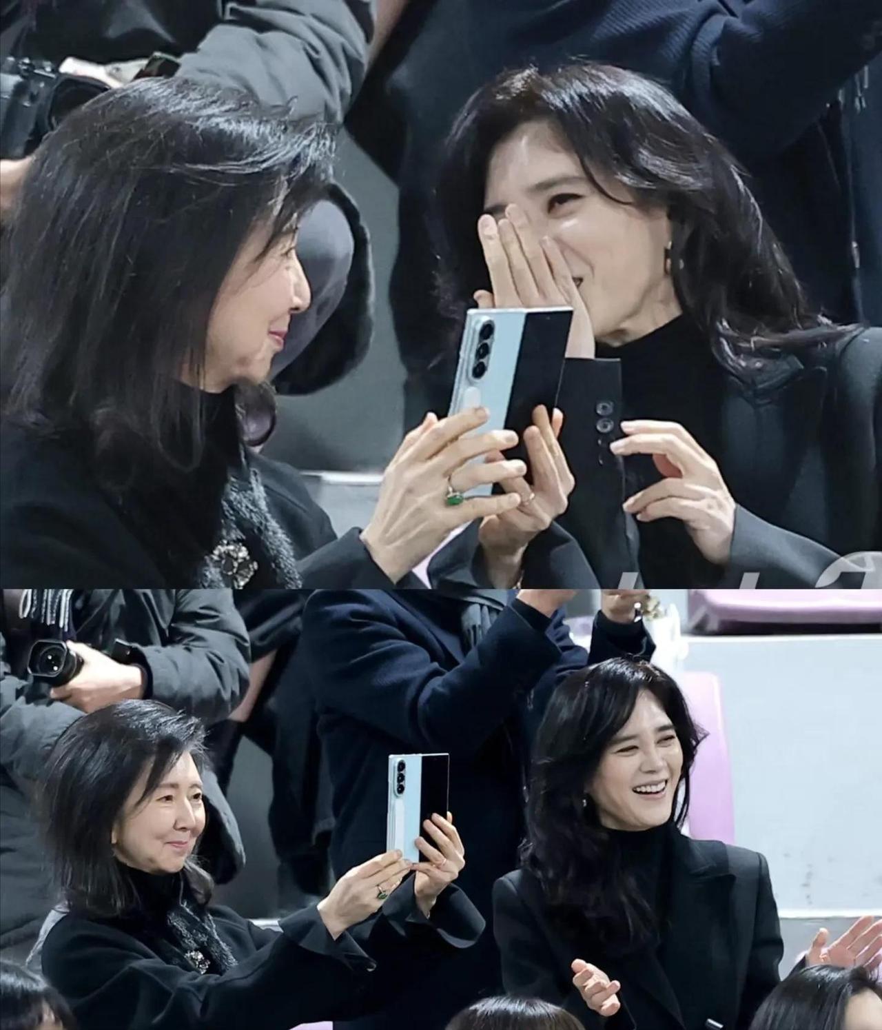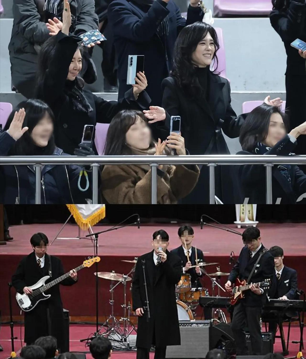 2月9日,三星长公主李富真出席了儿子任东贤的高中毕业典礼! 李富真出生于1970年,如今已经妥妥的55岁了,但是穿着一身黑色大衣,大波浪卷发,依旧不显老,少女感十足,优雅又时尚。 李富真手捧鲜花,给儿子送花,母子俩同框就像姐弟俩,丝毫看不出年龄差。 在毕业礼上,任东贤更是上台献唱,李富真站在观众席上,笑望着台上的儿子,不时跟着哼唱,笑得一脸骄傲和满足。 李富真的儿子毕业,和她一同出席的还有三星美术馆的前执行副馆长洪罗英,也就是李富真的小姨。 前段时间,三星会长李在镕儿子军校毕业,除了李富真,奶奶洪罗熙、李在镕、李在镕前妻、李在镕的妹妹李叙显一家子都来了。 李富真儿子毕业,其他人都没来,对比也是相当明显。