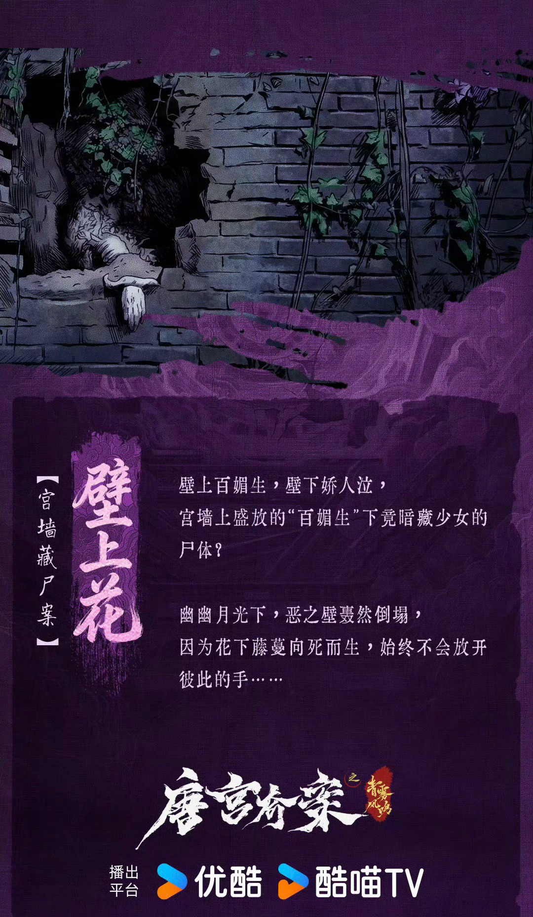最近在看唐宫奇案,很流畅很精彩的一部作品,从故事开头的高能开场、交代身世伏笔、铺陈男女主相遇,到公主案层层推进,结尾再抛新尸,唐宫奇案环环相扣不拖沓。而最令人惊喜的是叙事丝滑不割裂,由鬼新娘案牵出鸿胪寺卿,顺势衔接公主和亲线,用角色的言行藏住人物心事与朝堂暗流,细节埋得自然又精巧,追的时候全程很紧张,生怕错过任何细节,紧凑又不失合理的节奏确实有牢牢抓住了观众的眼球。白鹿饰演的李佩仪我愿称开年最带感女主,能文能武、正直又带点疯批感,打戏利落干脆,假死查案智商全程在线,尤其鬼新娘登场那幕氛围感拉满,但李佩仪也不是开金手指的完美神探,她身世成谜且背负着过往,有韧劲也有软肋,人设很立体饱满也很有张力,总让人有种女版狄仁杰既视感而《唐宫》不同于传统意义上只依靠侧重“大女主”题材塑造单一人物成长线的设定,它的精髓在于————将小人物的角色饱满与主线剧情的推进和人物成长紧密相连。第一案是深宫权贵女子的被禁锢和挣扎,第二案是深宫底层女子的被践踏与抗争,《唐宫》自始都在打造一款健康的女本位体系,直到璧上花一案尘埃落定,方才恍然大悟而后感受到了这里的格局之所在。卢正廉不正廉,含笑不含笑,桃枝难逃之,婉顺不顺遂,那么“壁上花”到底是什么?它其实是一个隐喻系统:是底层女性在绝境中的 “生命力图腾”,是被害者的 “无声证词”,是女性互助的 “隐秘联结”,更是对所有看客的追问:如果墙会吃人,那么你是沉默的砖,还是凿开光的那双手?而为什么我们会为之落泪,因为我们每个人都曾是或正是——那个在夹缝里找光的“含笑”。人心中的成见是一座大山,横亘在那堵墙,可能是偏见、是规训、是现实的重压。正如《唐宫》的每一个案子背后想要告诉我们的:只要身上还留着“花种”,只要不放弃寻找缝隙里的光,我们都能开成自己的那朵花。女孩们从不是等待被发现的遗骸,而是自己长出来的春天,个体的能量或许分散在小人物身上会饱受风霜洗礼,但它们终究会汇聚成群像的力量,成为托举绮丽之花的臂膀。唐宫奇案抢先看片会repo唐宫奇案