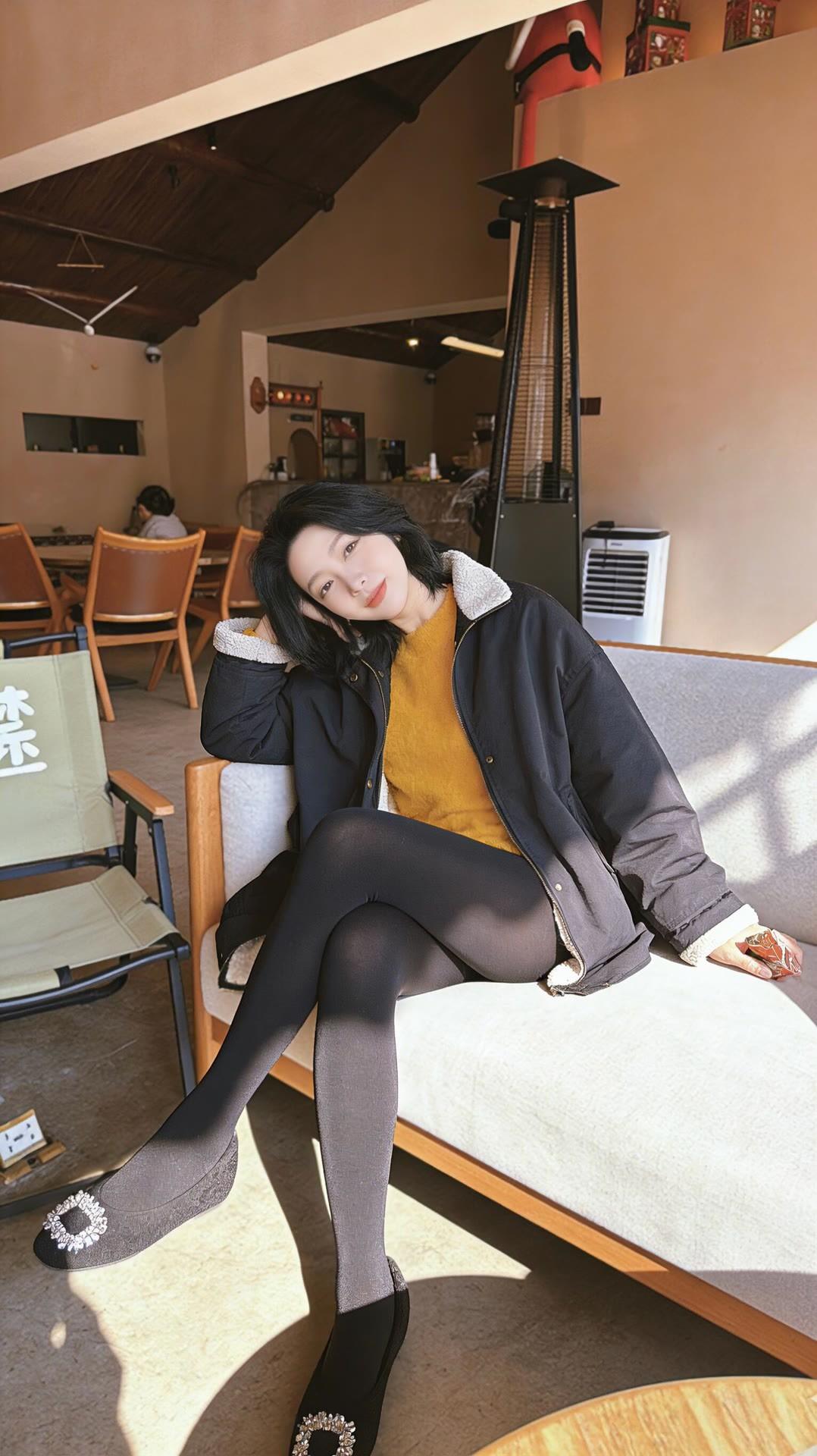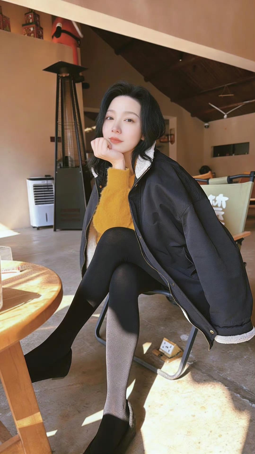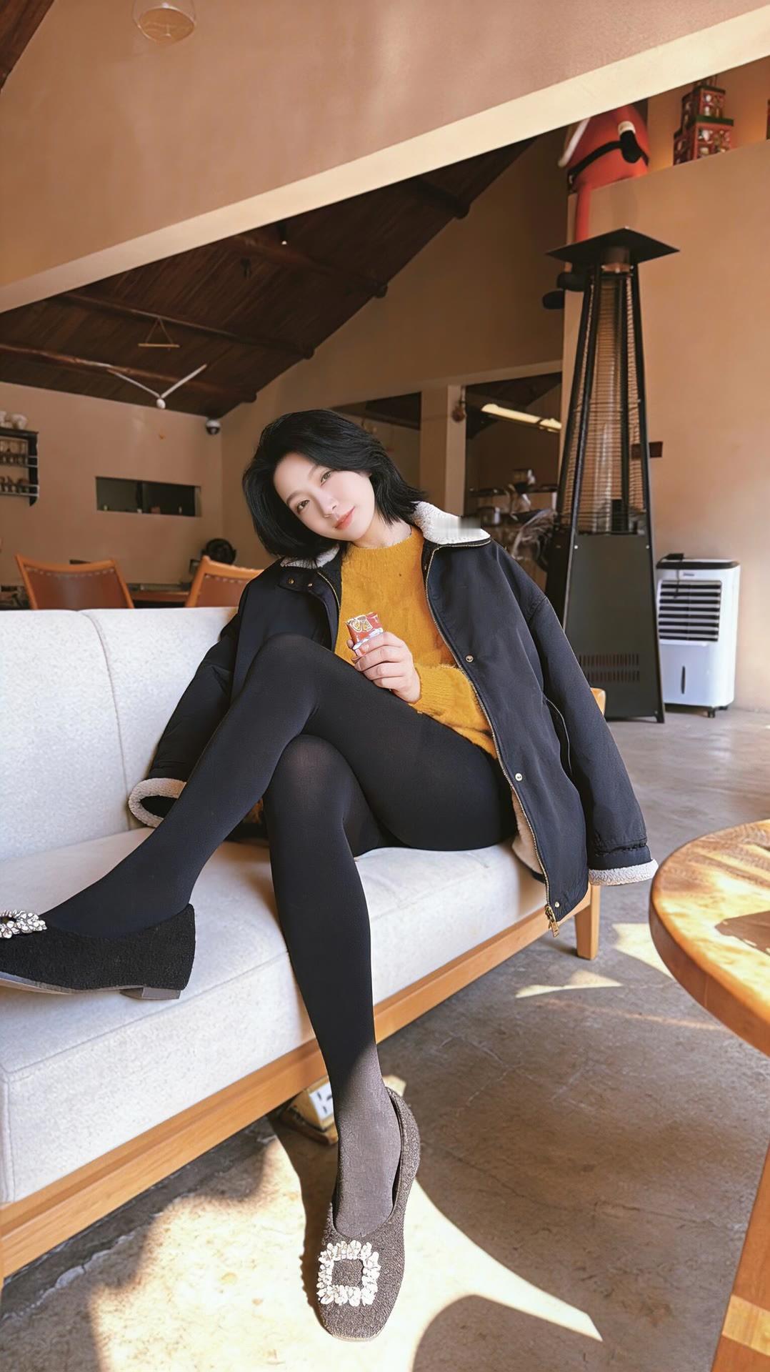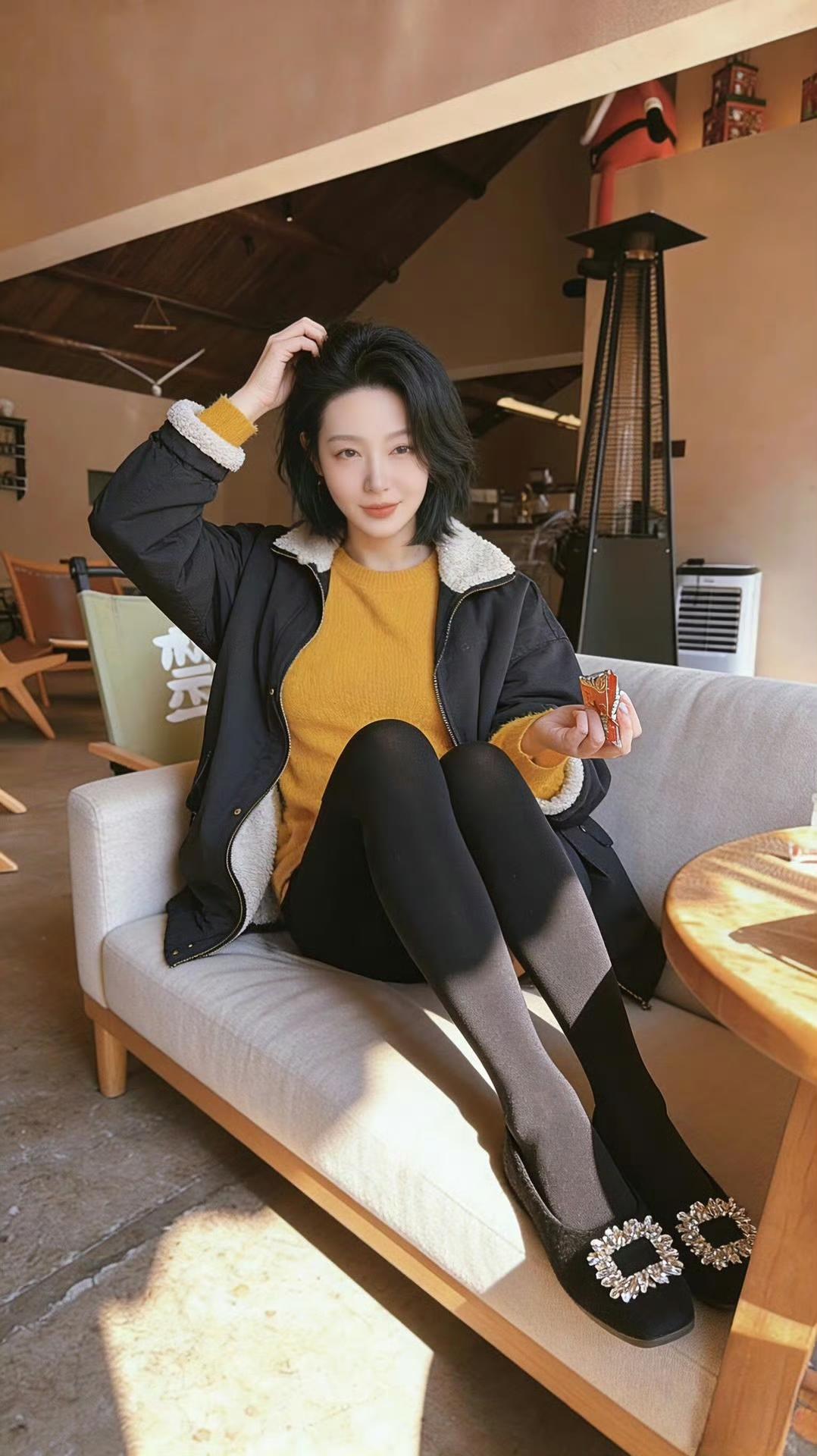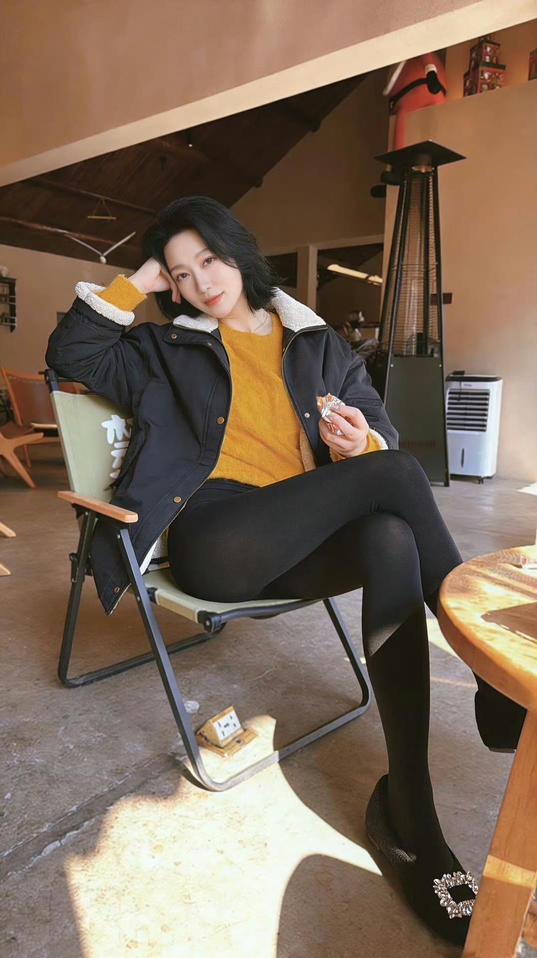 这套是温暖休闲风,很适合秋冬的室内休闲场合~ 核心是黑+黄的撞色搭配:黑色羊羔毛领外套保暖又有松弛感,内搭姜黄色毛绒毛衣提亮氛围,搭配带钻单鞋,舒适中带点精致小细节,整体温暖又不失时髦感。休闲穿搭 简约高级的穿搭范本
