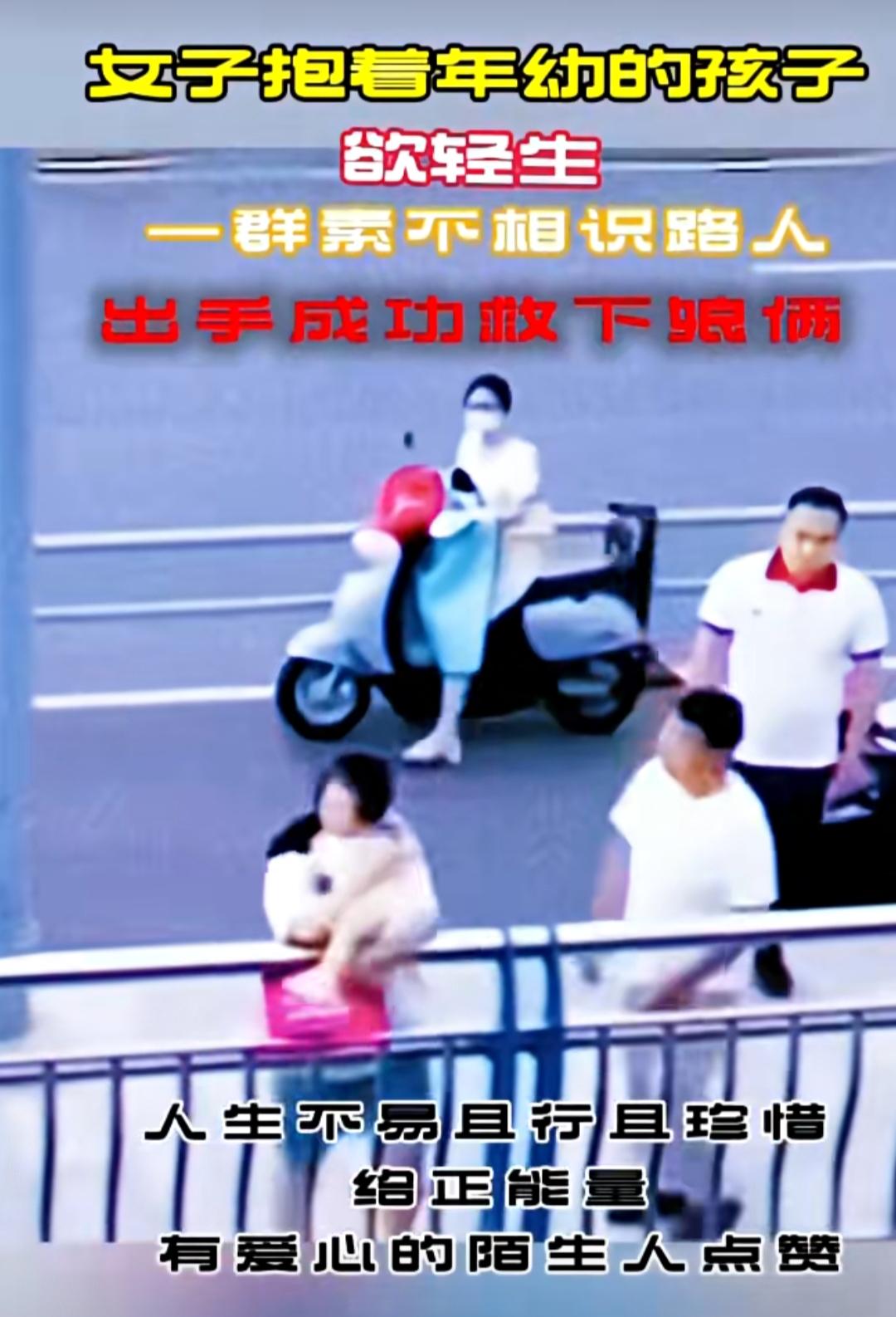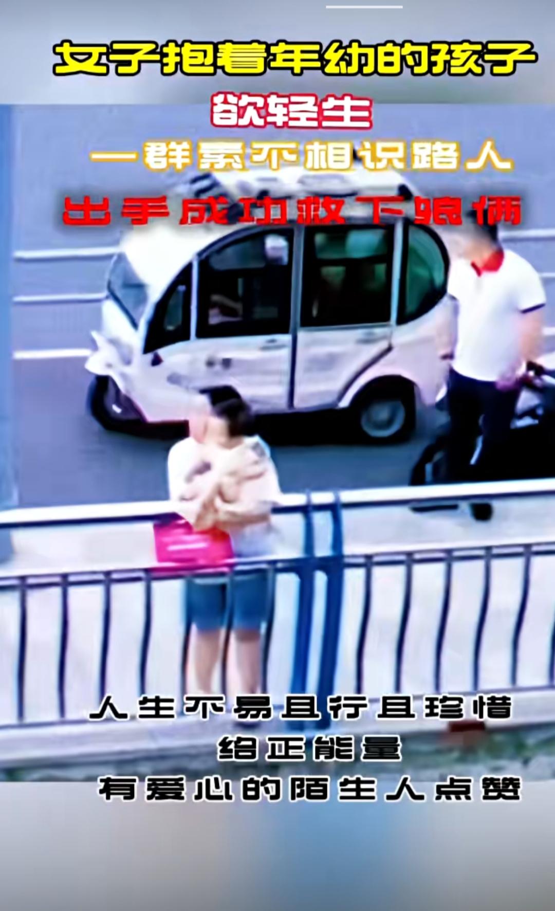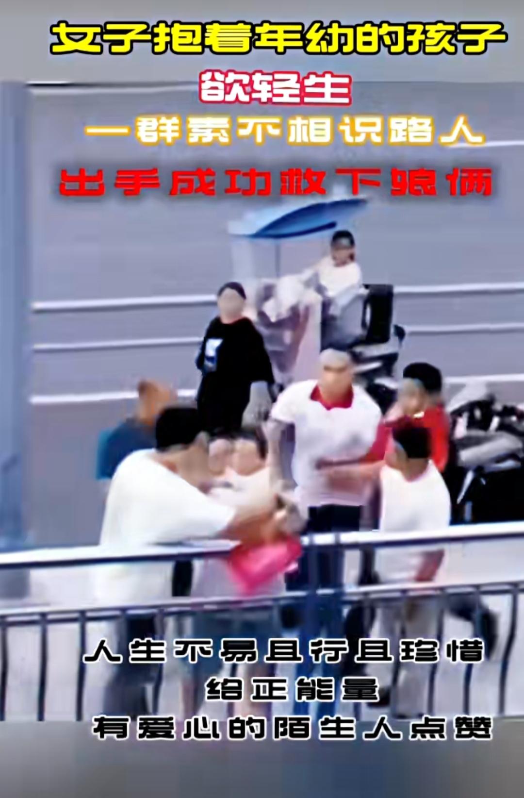 大桥之上,车水马龙。一位年轻妈妈抱着年幼的孩子,情绪崩溃地站在护栏外,脚下就是滚滚江水。她的身体摇摇欲坠,每一次风的吹动都让人心惊肉跳。 就在这千钧一发的时刻,几位路人发现了这惊险的一幕。他们没有丝毫犹豫,立刻停下脚步,悄悄向女子靠近。其中一位穿白T恤的男子,趁着女子情绪稍有缓和的瞬间,一个箭步冲上前,紧紧抓住了她的胳膊。紧接着,其他路人也纷纷上前,大家合力将母子二人从护栏外拉了回来。 整个过程不过短短几十秒,却看得人手心冒汗。事后,据目击者称,这位妈妈可能是因为生活压力太大,一时想不开才做出了这样的举动。幸好,这些素不相识的路人伸出了援手,才避免了一场悲剧的发生。 这段救人的视频被传到网上后,迅速引发了网友的热议。大家纷纷为这些勇敢的路人点赞: “这就是陌生人之间最温暖的善意,谢谢你们!” “妈妈要坚强,为了孩子也要好好活下去。” “愿每个想不开的人,都能遇到这样一群好心人。” 人生总有至暗时刻,但请别忘记,你永远不是一个人在战斗。也许是一句安慰,也许是一次伸手,就能把一个人从绝望的边缘拉回来。这些路人用行动告诉我们,善良是会传染的,只要每个人都愿意伸出援手,这个世界就会充满温暖和希望。母子生死瞬间