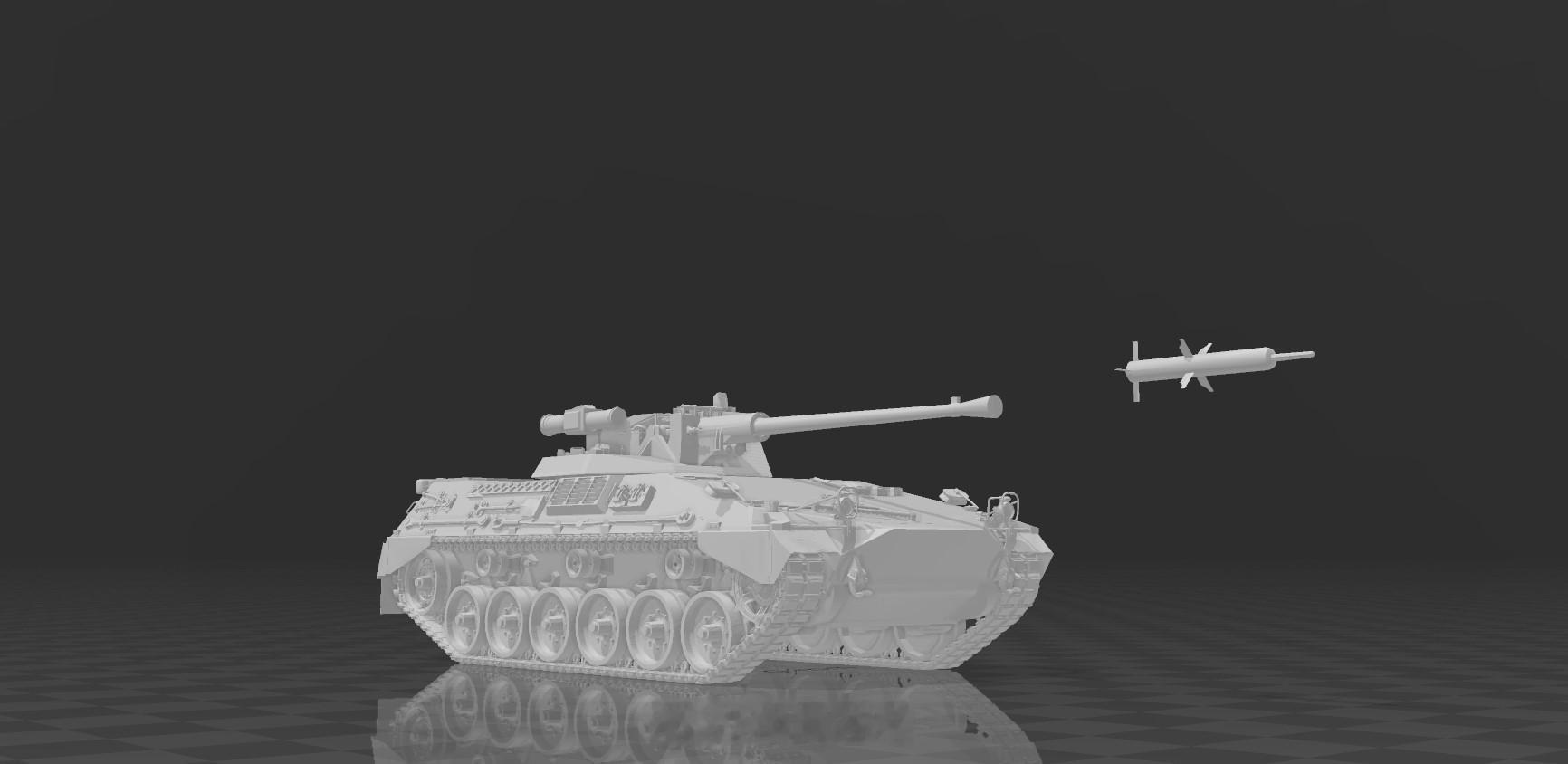 基于黄鼠狼步兵战车的改进底盘,搭载MTU MB 833 Ka-500 柴油发动机,提供720 马力;战斗全重约 33.5 吨,公路最大速度 75 km/h;沿用 Marder 的行走机构与传动,维护通用性强。双人炮塔(车长、炮手)+ 驾驶员;车体后部可载 3 名步兵 / 侦察兵,兼顾有限运兵与协助导弹再装填。