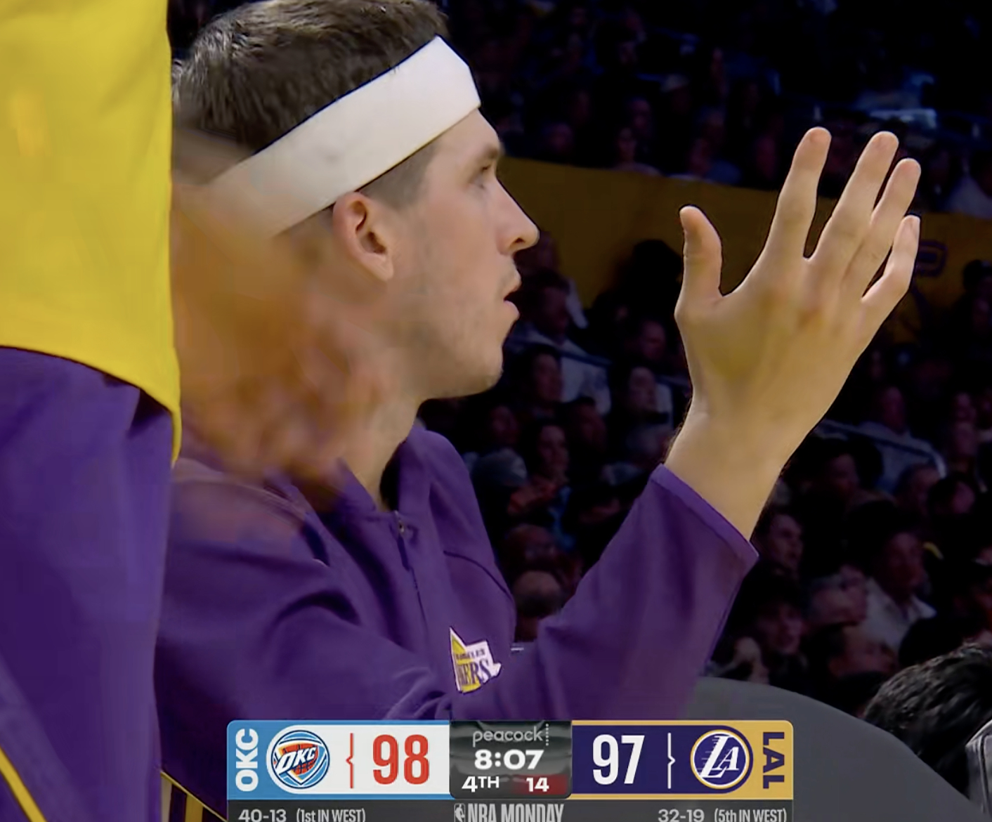 海斯一上来就2+1,雷霆暂停了 湖人87-82雷霆雷霆vs湖人