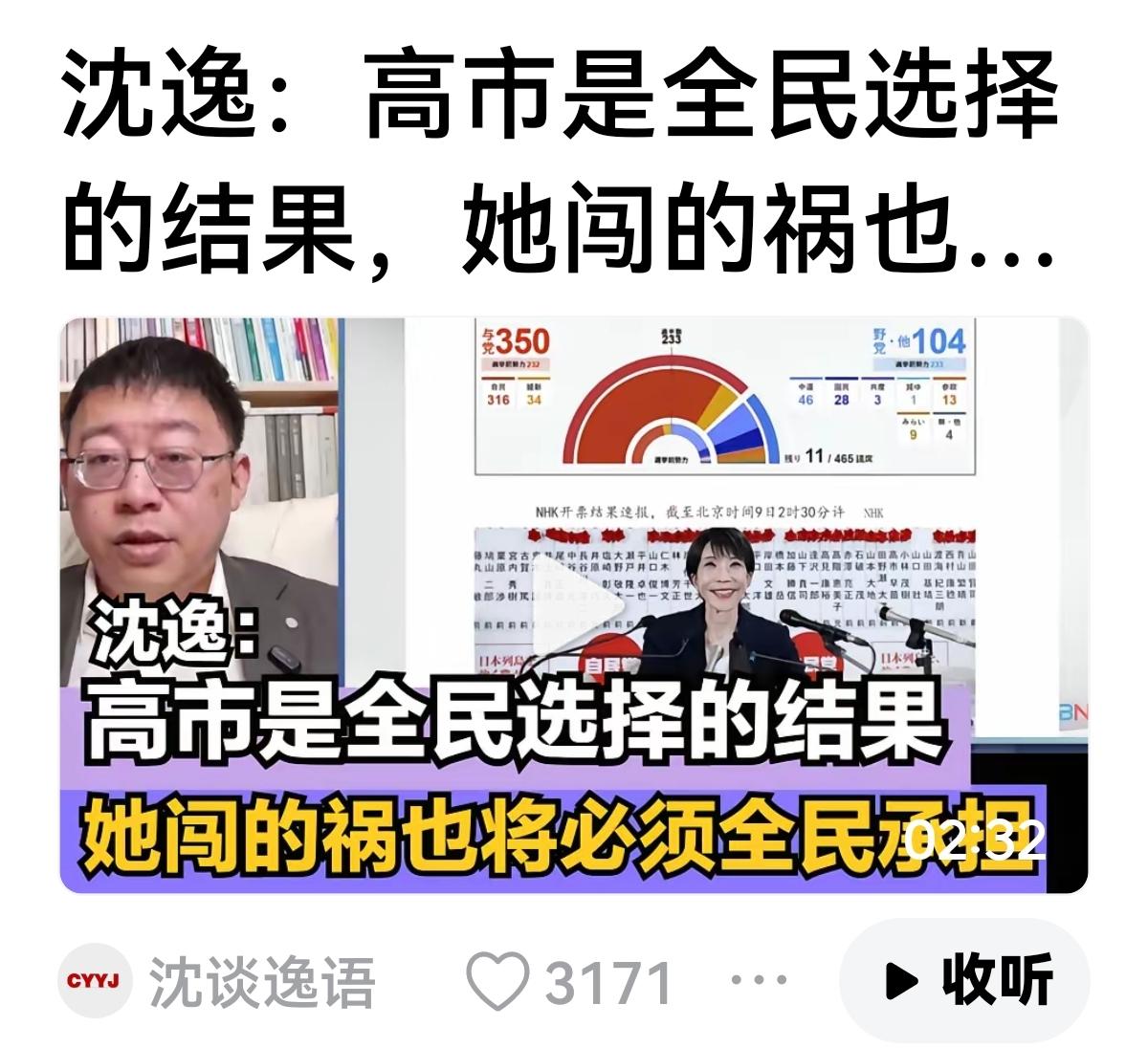 【有关统一】 说真的,面对现实,说统一蔡正元讲的太残酷。 我们专家太兴奋,太轻敌,当然也有很多无奈。 现实与法理,被美国玩的炉火纯青,法理从来不说“独”字,现实千方百计支持。 我们是强调法理,现实却越来越远。 沈逸谈到统一,越谈越兴奋,越说越容易,特别高市当选,让沈逸注入强心针,等待随时出击。 张维为魔高一尺道高一丈。那句弯弯还会有下一次选举吗?震撼国人,是啊!某天一亮,解放了。 金这次比较保守,忧心忡忡,希望早一点下手。 高就是滥竽充数,也搂了一把。