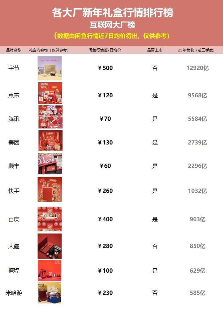 大厂新年礼盒闲鱼行情排行,在二级市场最具价值的可能是没有上榜的泡泡玛特,闲鱼均价800