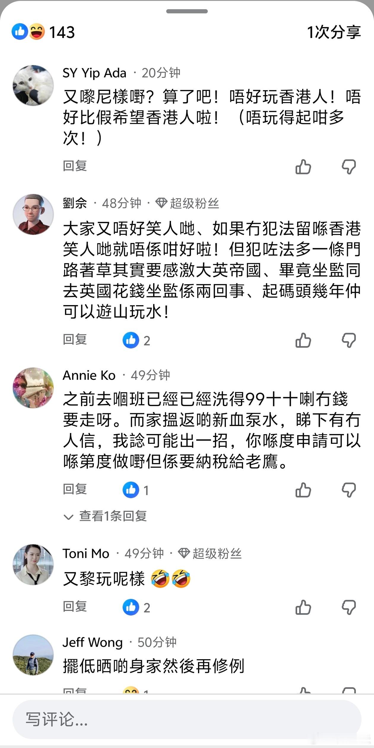 我都怀疑英国是不是跟中国谈好了,要分担一下香港的人口压力?