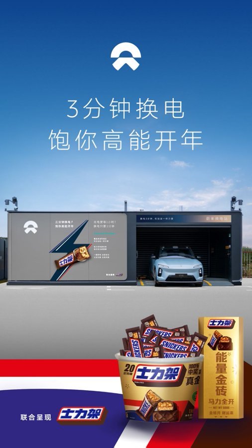 之前我真的以为士力架x蔚来换电站是网友的 ai 图,没想到是真的。今天官方终于官宣了。