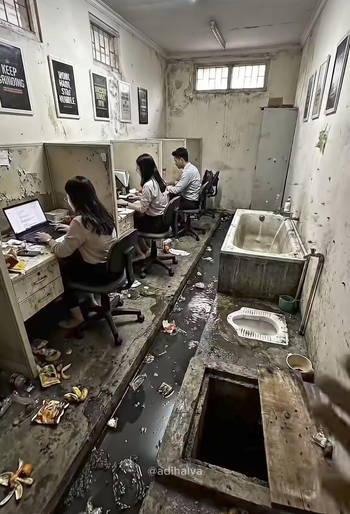 这样的办公环境,一个月给你1万可行? 这破地方给五千都嫌多!墙角发霉能长出蘑菇,