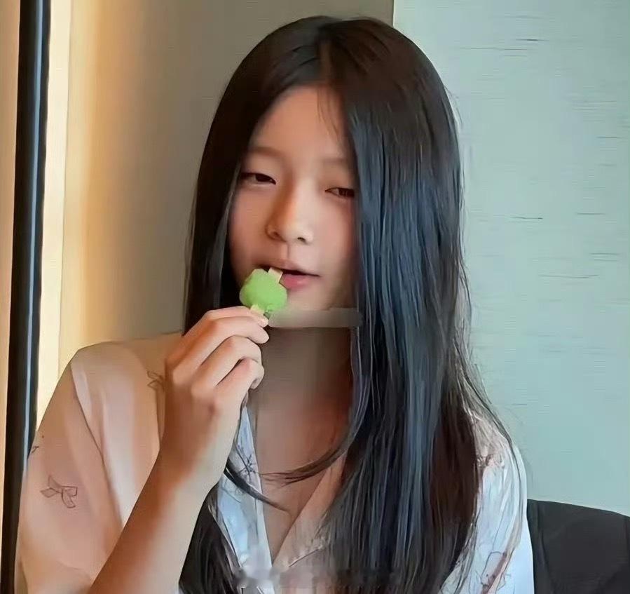 疑似11岁小玥儿正脸曝光!居家吃雪糕悠闲自在,五官神态简直大S翻版