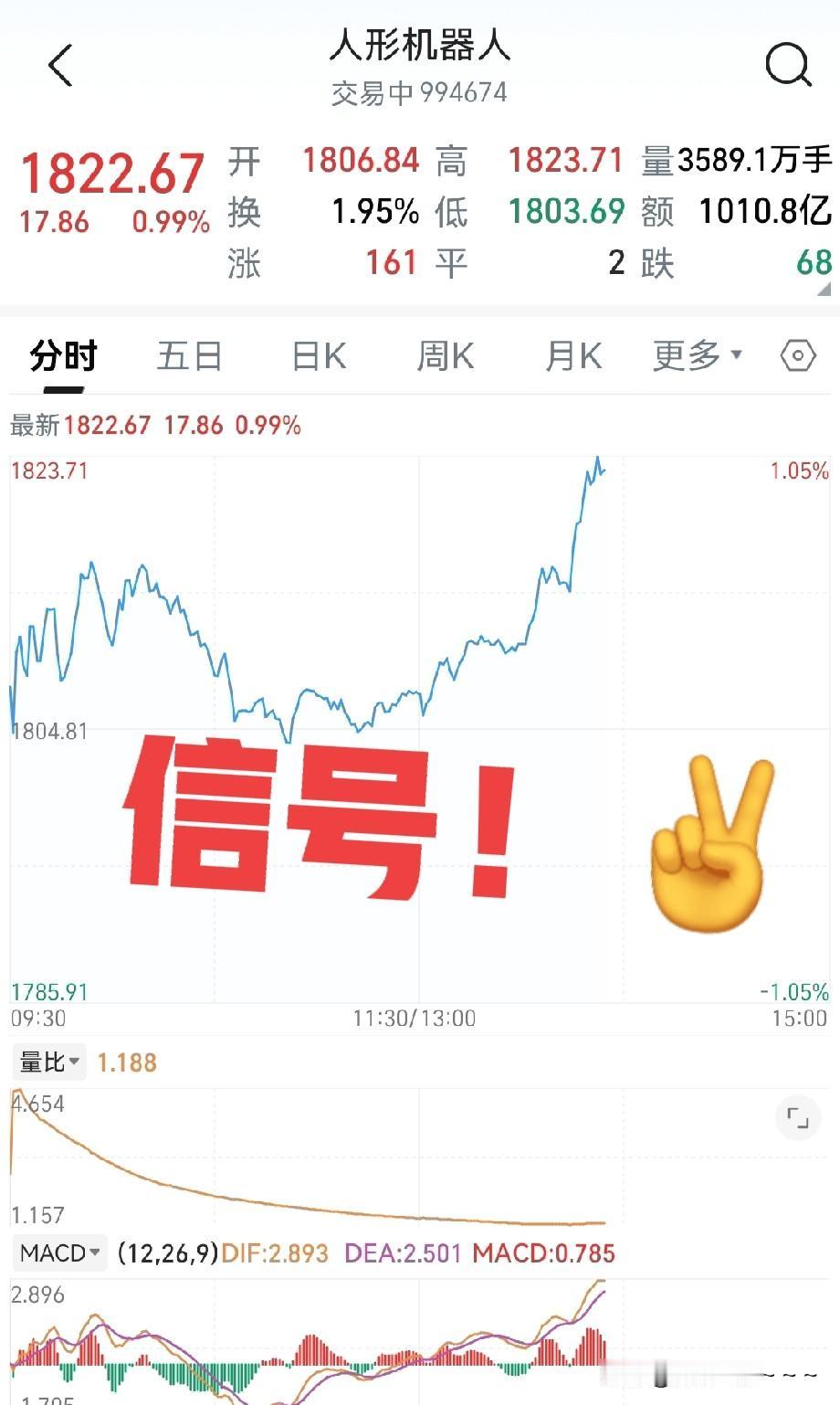 信号!信号!信号来了?! 盘中人形机器人异动,看到没有! 这可能就是接下来的热点,动作要快啊。毕竟,人形机器人有很多公司的产品都上春晚了,同时,现在世界人形机器人格斗大会正在进行,非常激烈和热闹。 从人形机器人板块板块日线走势上来看也非常完美,即将向上突破,从龙头股来看,也有好几个公司涨停了,很好。 我估计这一波情绪起来了,能维持个一两周,所以说,大家加油吧。