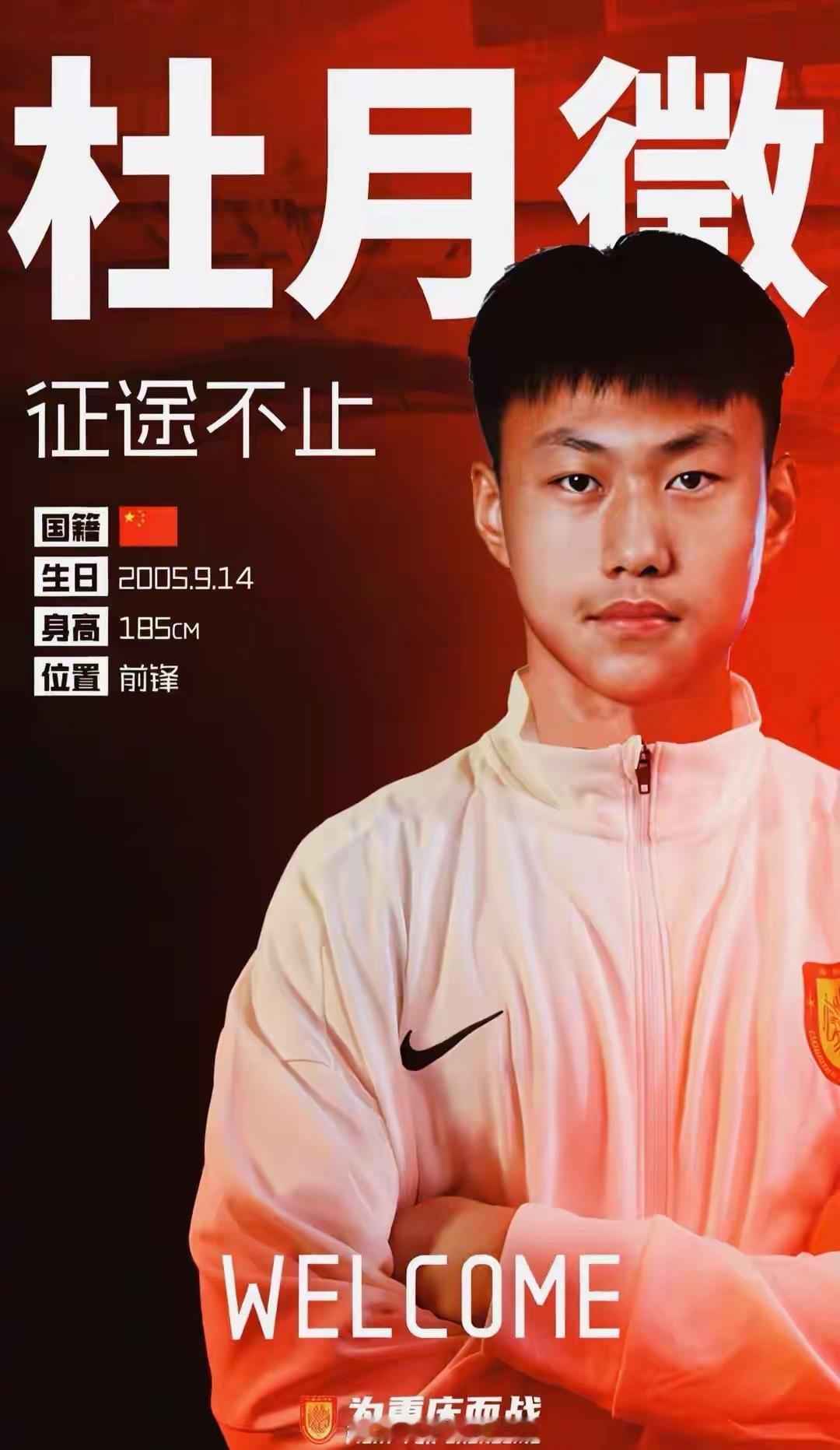 2月9日,重庆铜梁龙官宣20岁留洋中锋杜月徵租借加盟,租期一年,这是球队冬窗第12位新援。