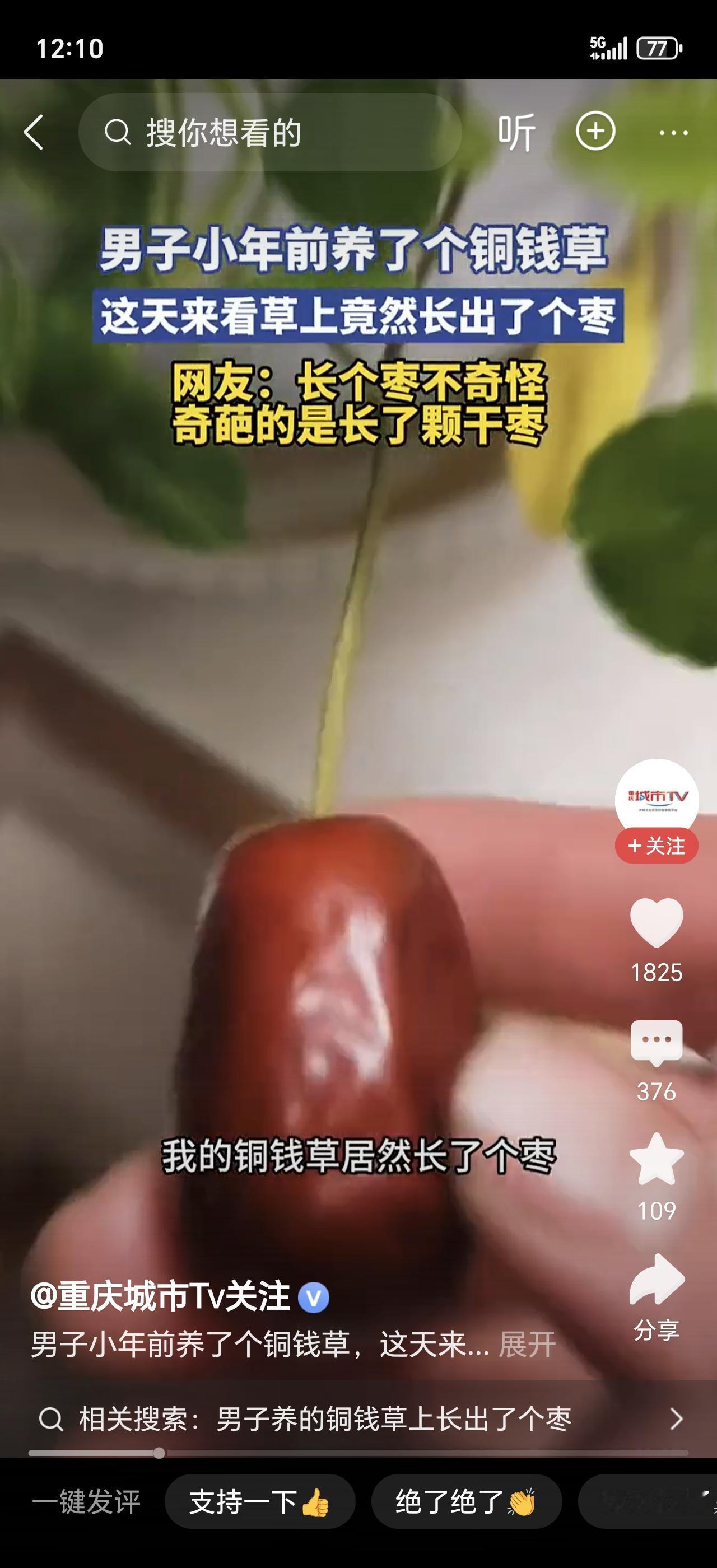太神奇了!男子家的铜钱草花盆里,竟长出了一颗完整的枣!这枣子到底从哪来的?真相让人哭笑不得。 有位男网友在家打理阳台的铜钱草,忽然发现翠绿的叶片中间,冒出了一个红褐色的东西。凑近一看,居然是一颗圆滚滚的枣子!他当场懵了,自己从来没在盆里种过枣树啊。 他小心翼翼地把枣子拿起来,发现它完好无损,就像被人轻轻放在茂密的铜钱草中央,被叶片温柔地托举着。花盆一直放在自家阳台上,这枣子难不成是自己长脚跑进来的? 网友们脑洞大开。“是鸟类的空中快递!” 这个猜测获得了最多点赞。可能是小鸟衔来枣子,暂放在这“绿色停机坪”上,结果忘了带走。也有人开玩笑说,是田螺姑娘看小伙子一人生活,偷偷给的关怀。 这个可爱的小插曲,让男子收获了连续好几天的好心情。他最终没舍得吃这颗“天降之枣”,而是放在了桌案上。生活里这种不期而遇的小惊喜,就像一份自然的礼物,比什么都治愈。 你觉得这颗枣子最可能是怎么来的?你家植物有没有迎来过什么意想不到的“不速之客”?快来评论区分享你的猜想和趣事吧!铜钱盆栽 陶罐里的铜钱 铜钱草种 铜钱玉带草 铜钱花