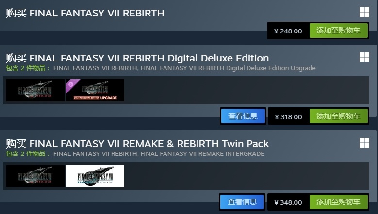 【《最终幻想7:重生》Steam价格永降,下调100元】