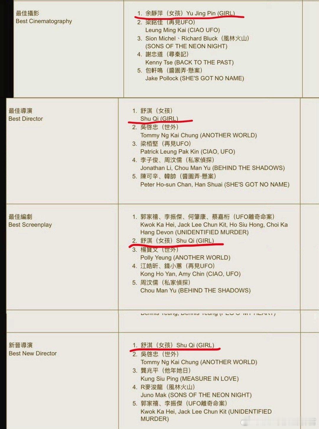 舒淇女孩金像奖四项提名 从演员到导演,舒淇用《女孩》证明了自己!金像奖四项提名在手,最佳导演、新晋导演等荣誉入围,这份成绩单太亮眼!